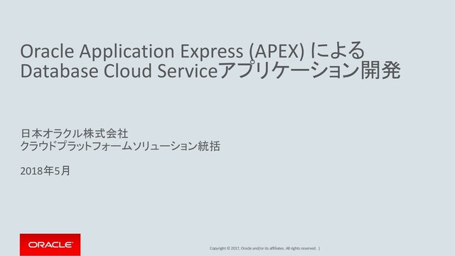 Oracle Application Express (APEX) 概要 最初のログイン ワークスペースを作成しよう アプリケーションを作成しよう 作成したアプリケーションを使ってみよう(対話グリッド編) 作成したアプリケーションを使ってみよう(対話モード・レポート編) SQLワークショップを使ってみよう