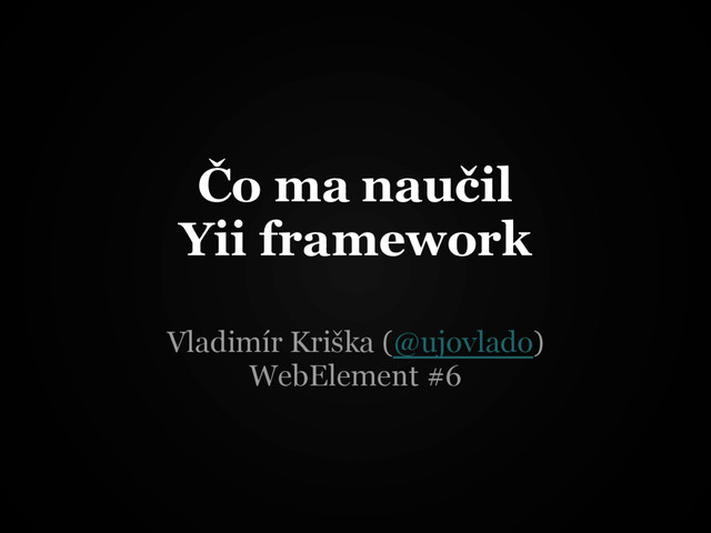 Čo ma naučil Yii framework Vladimír Kriška (@ujovlado) WebElement #6