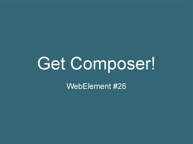 -sS https://getcomposer.org/installer | php • Make simlink to /usr/local/bin/composer or wherever sudo ln -s ~/composer.phar /usr/local/bin/composer • Nothing complicated, composer command is now available • There's also installer for Windows – Next, Yes, Next, Next, Yes, Finish