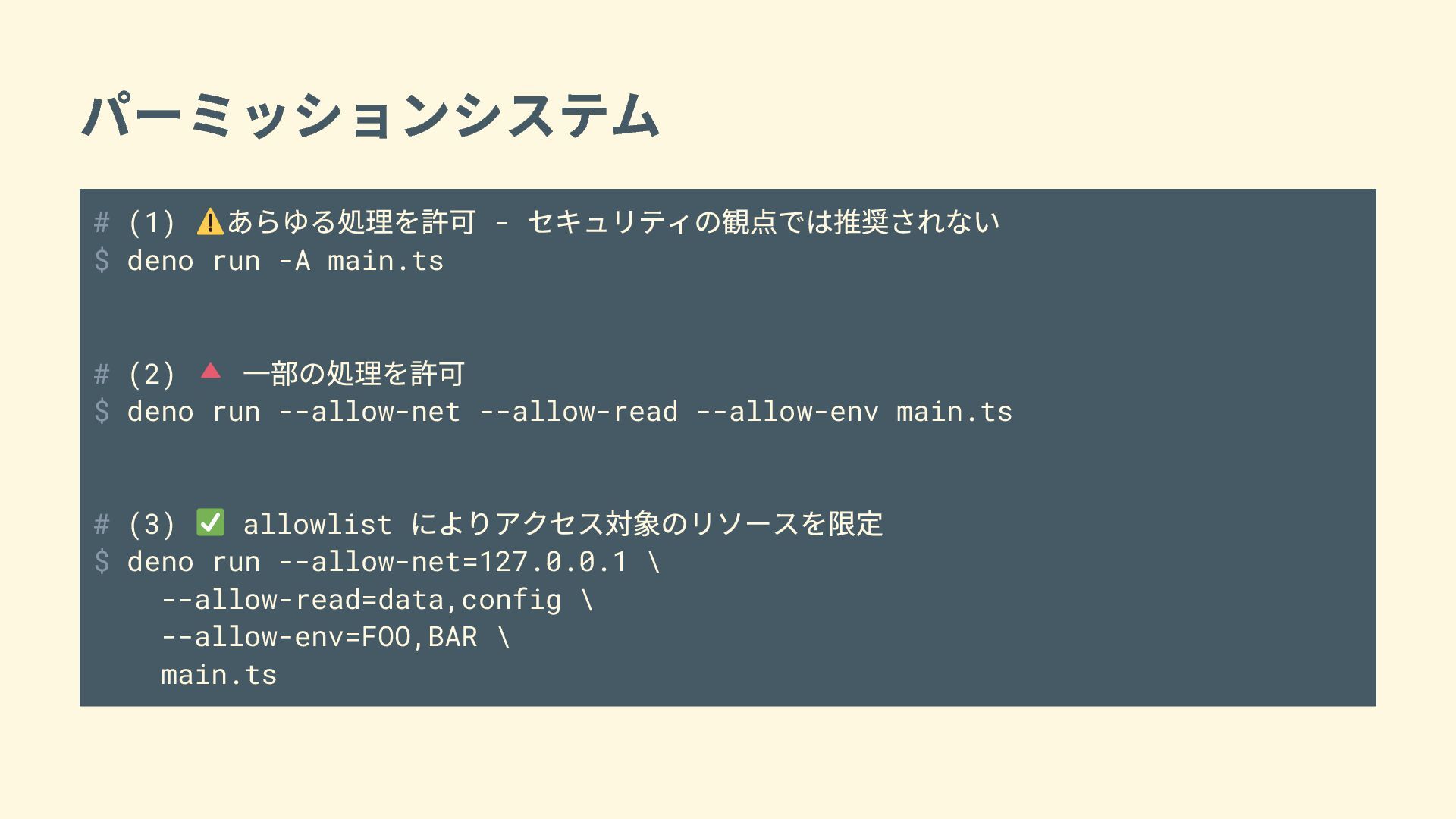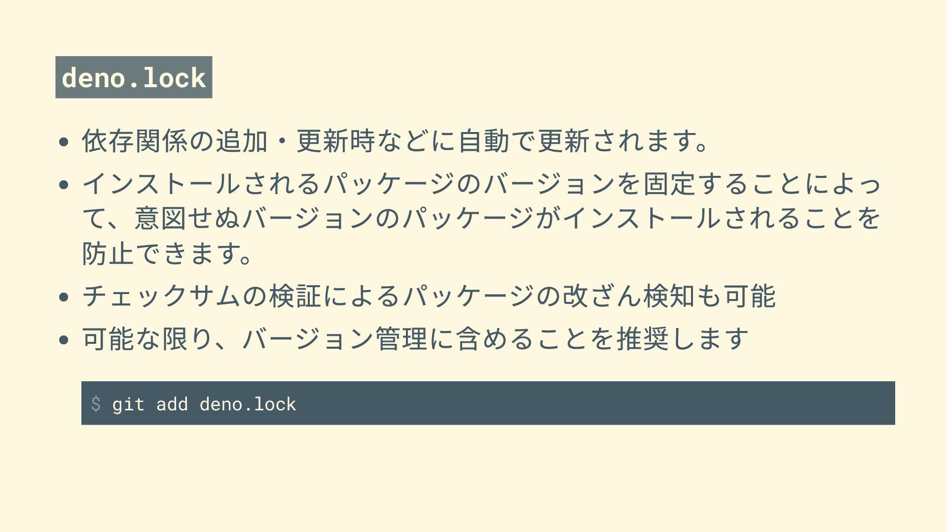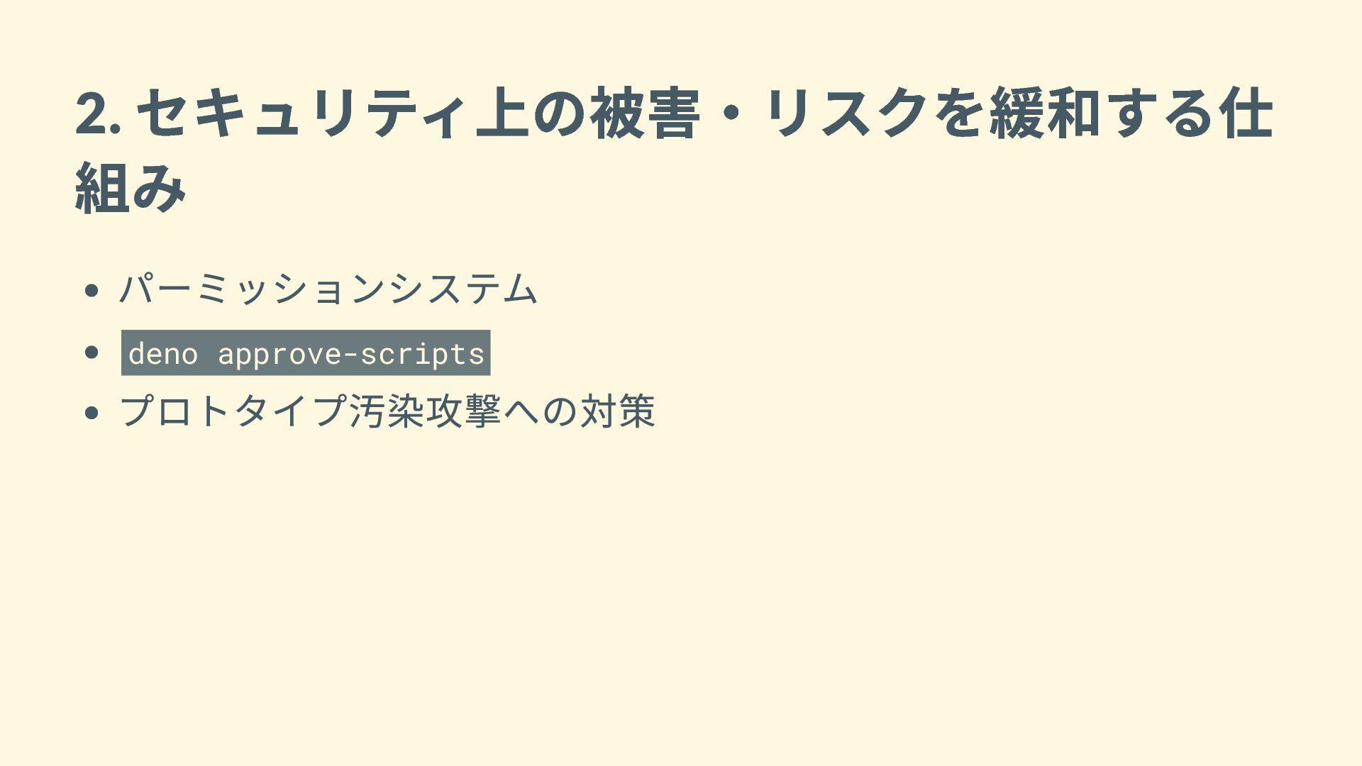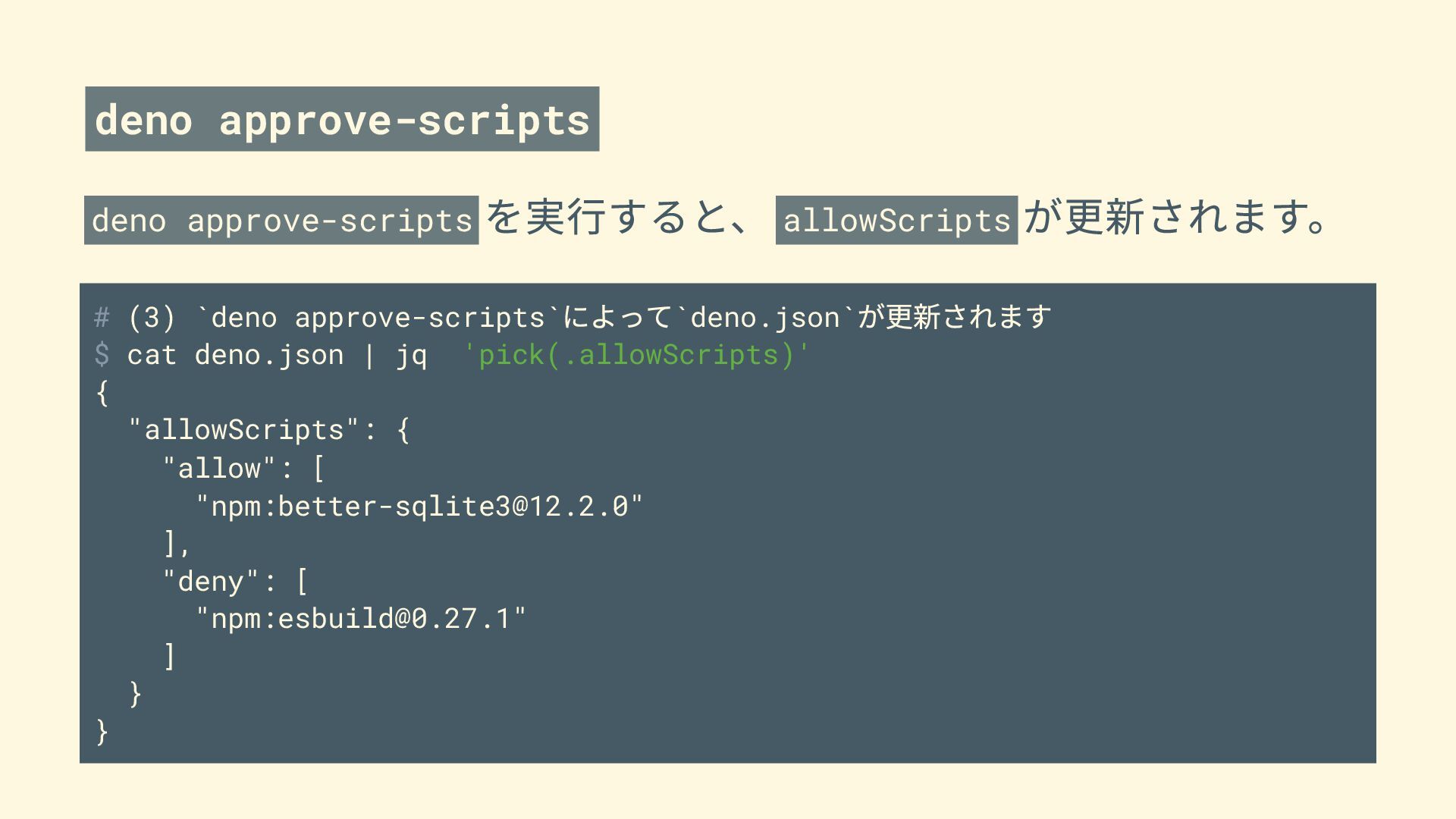 # (1) ライフサイクルスクリプトを提供するパッケージをインストール $ deno install npm: