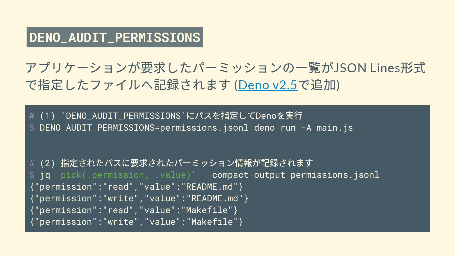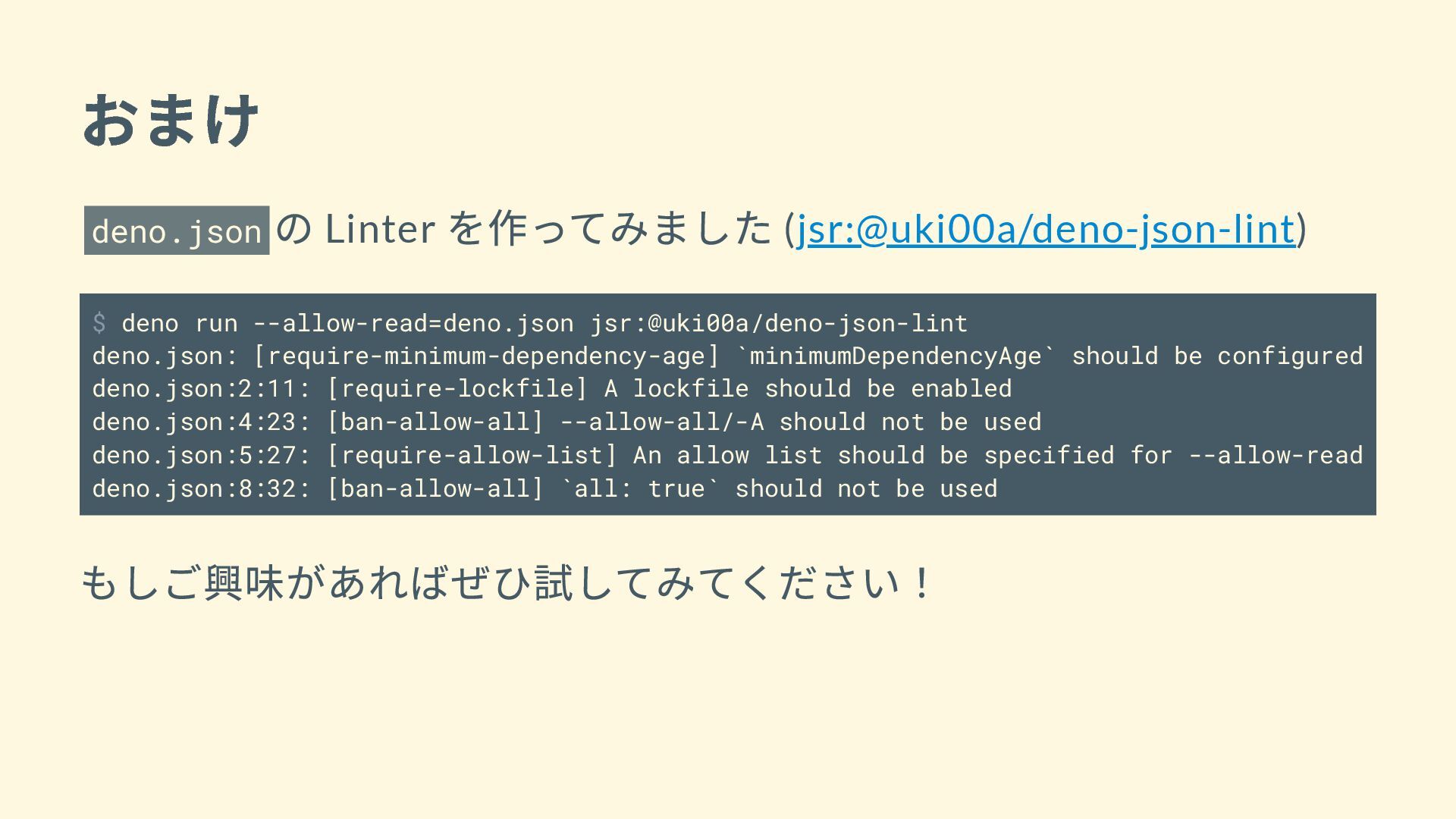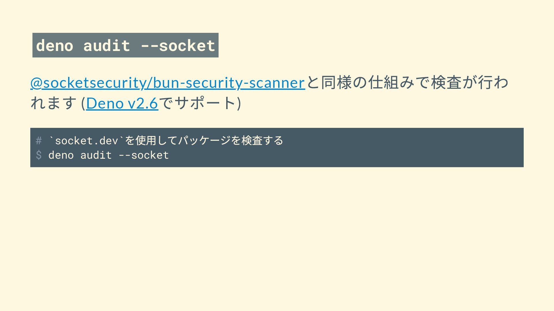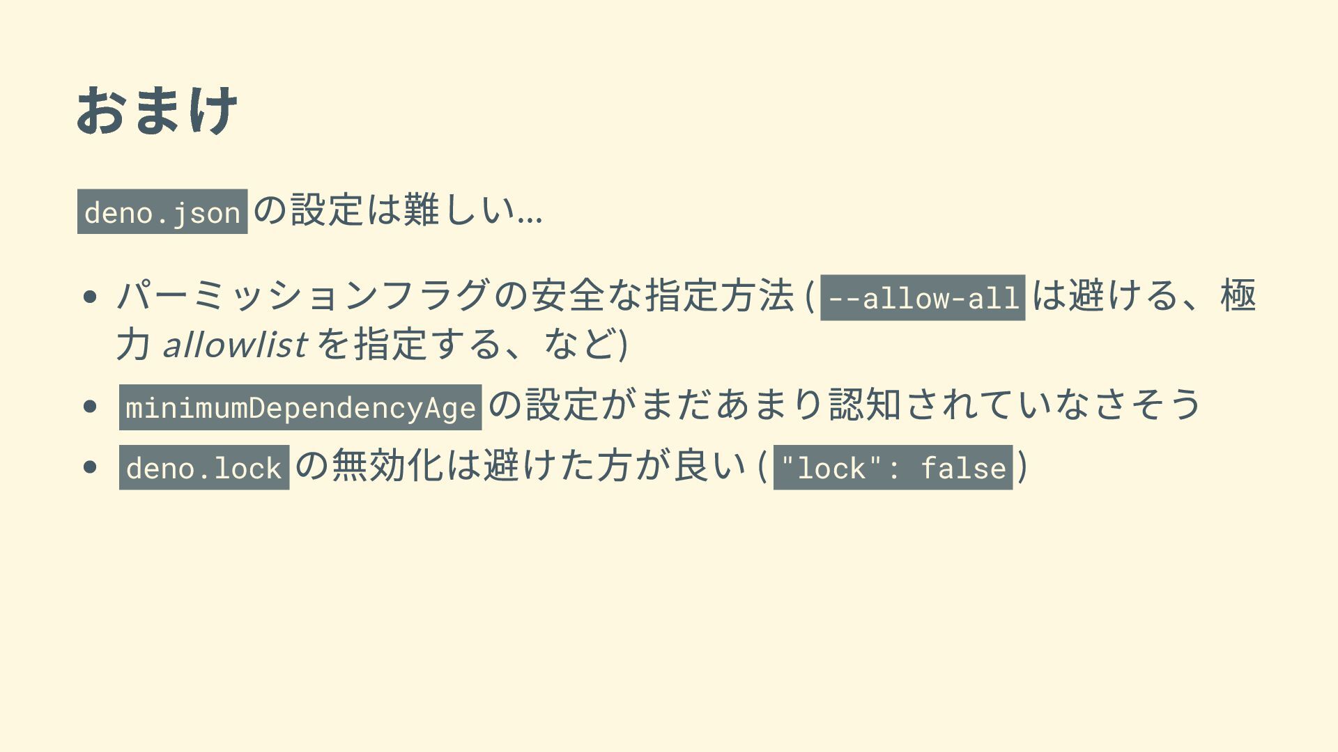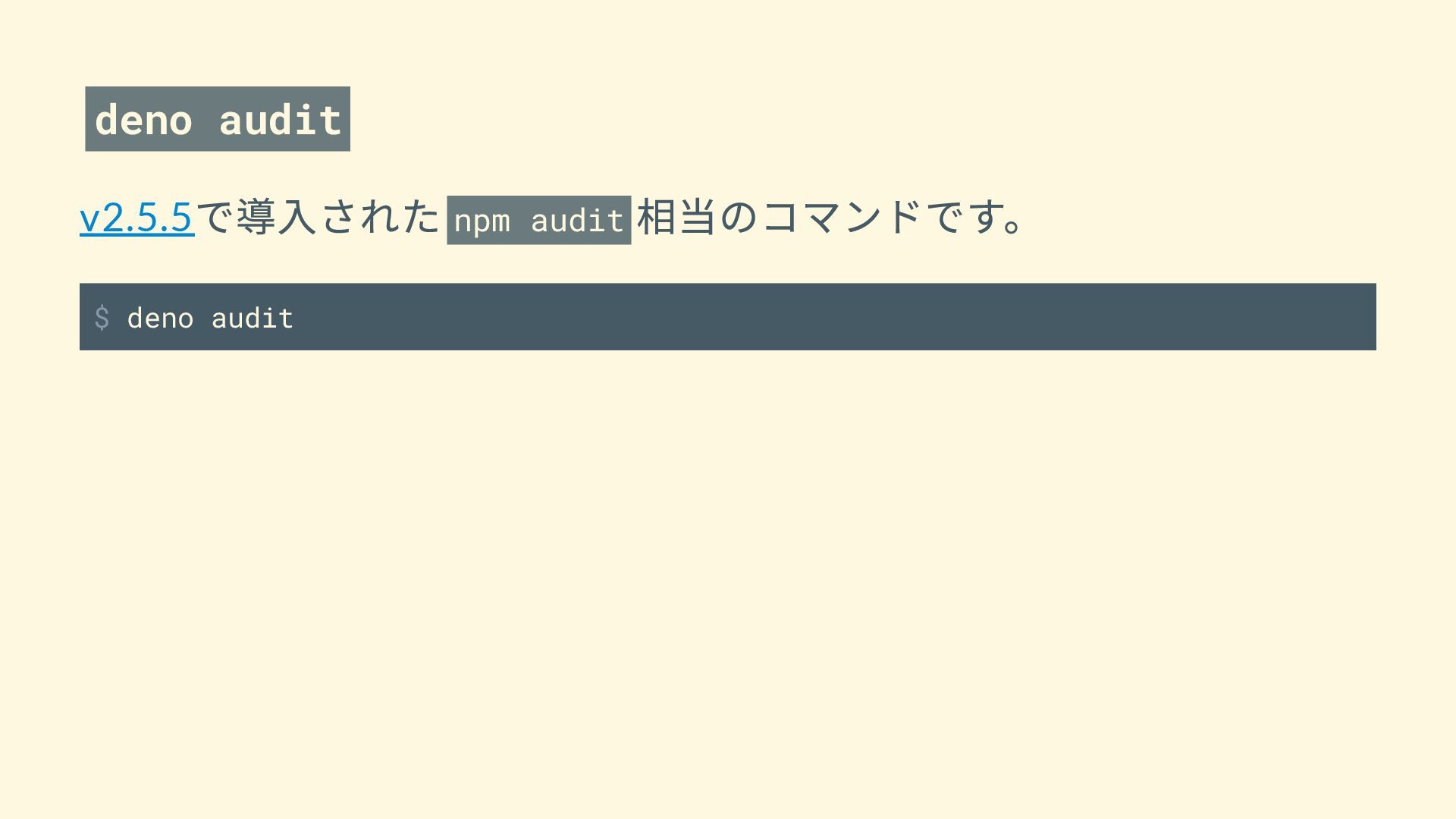 # (1) ライフサイクルスクリプトを提供するパッケージをインストール $ deno install npm: