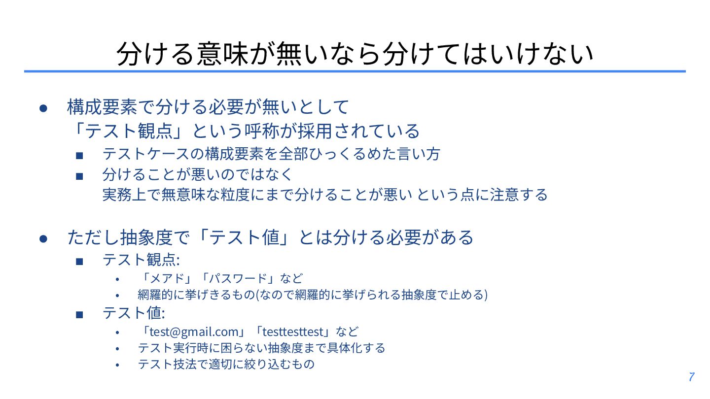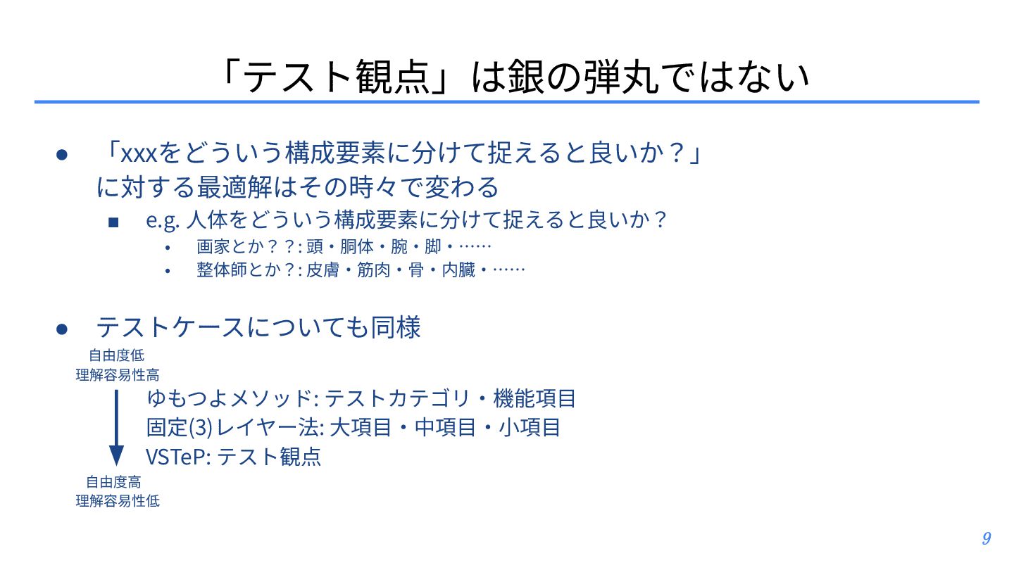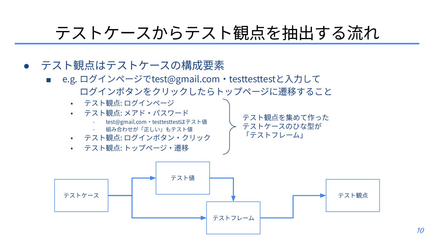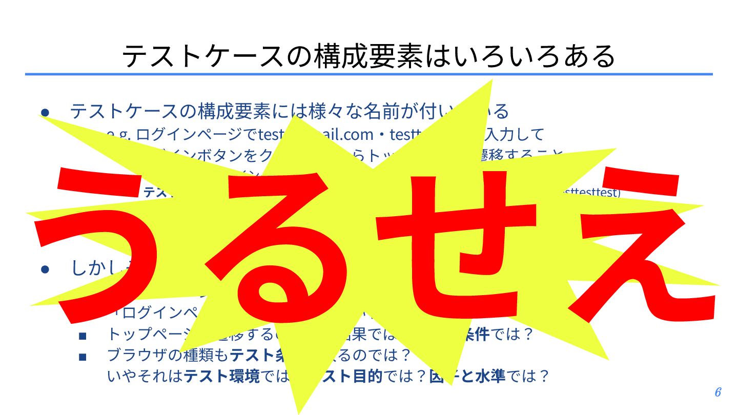 テスト観点 ▪ テスト条件とテスト観点: https://posfie.com/@nemorine/p/Ka0oH8i ▪ 「テスト観点はふんわりね」: https://qualab.jp/fundamentals_of_viewpoint/ ▪ 「テスト観点が...」って⾔われたときはどうするか?: https://note.com/yumotsuyo/n/n0d661da5b906 • テスト開発 ▪ 第三世代に突⼊したソフトウェアテスト: https://www.jasst.jp/archives/jasst10t/pdf/s1.pdf ▪ テスト設計チュートリアル テスコン編 ’25: https://youtu.be/QjASgnMCSas?si=8FgFeVt5CFptOaDA • その他関連トピック ▪ モデリングのそだてかた: https://speakerdeck.com/mizunori/how-to-learn-modeling ▪ 空間構築または空間探索として、ソフトウェアテスティング‧プロダクト開発‧創作活動を捉 えてみる: https://hansuoi.hatenablog.com/entry/2025/05/15/080020 21