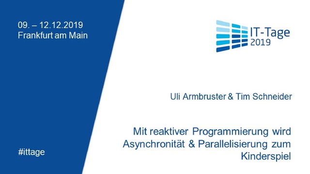 Vortrag der IT-Tage Frankfurt 2019 zum Thema Reactive Extensions mit dem .NET Framework.