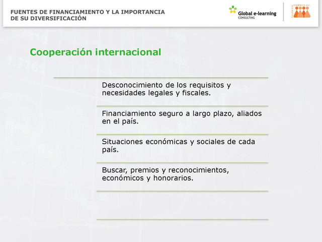 seguro a largo plazo, aliados en el país. Situaciones económicas y sociales de cada país. Buscar, premios y reconocimientos, económicos y honorarios. Cooperación internacional