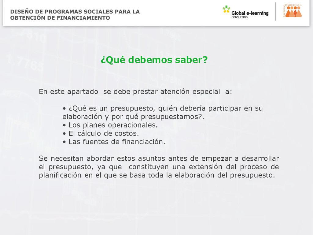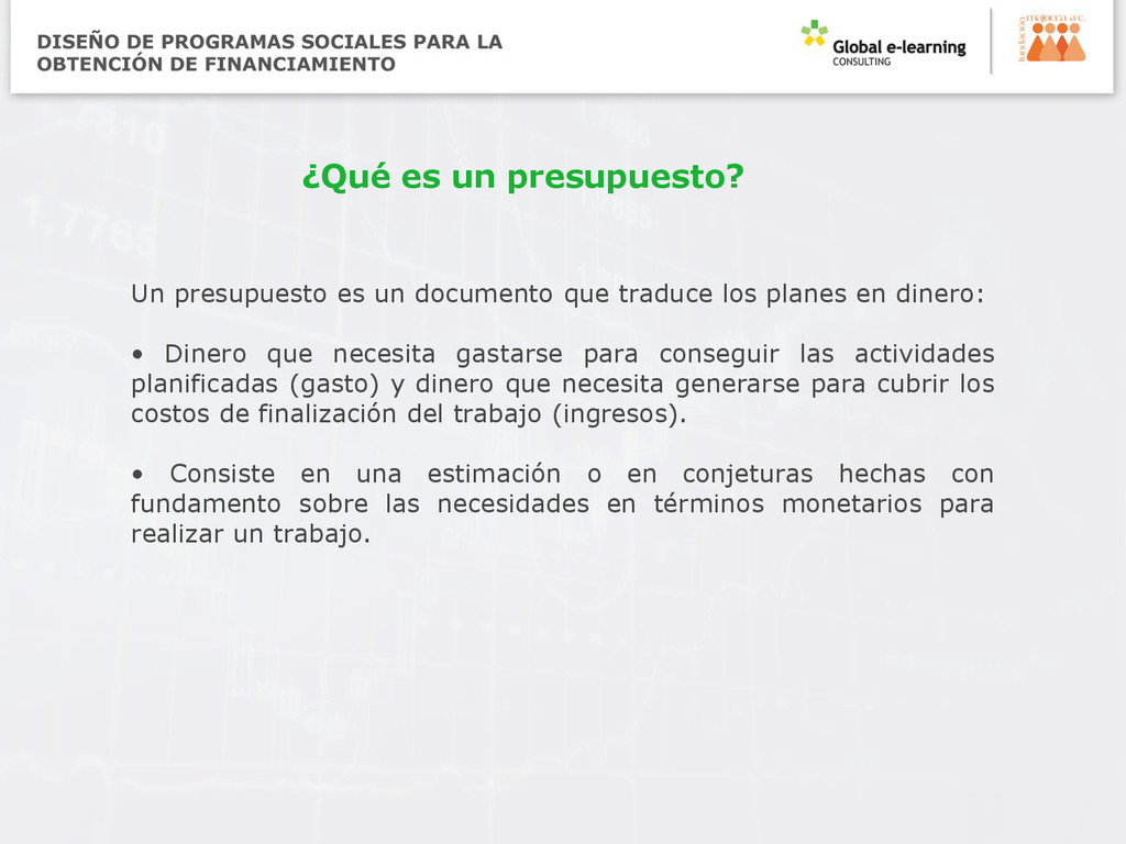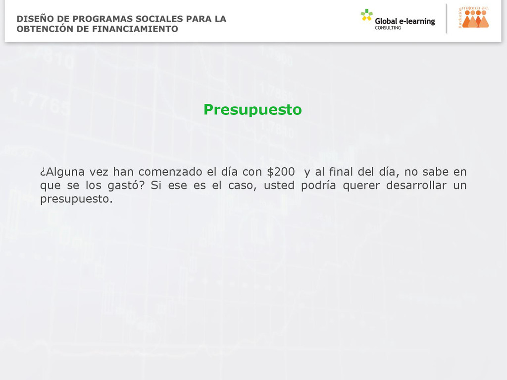 presupuesto, no se debe improvisar a medida que se realiza. Al igual que en todo buen ejercicio de administración de una organización, un buen ejercicio presupuestario implica: • Claridad de propósito. • Planificación detallada. • Pensamiento considerable. Éstas son algunas de las preguntas que deberá responder a lo largo de las distintas fases de la preparación presupuestaria y el desarrollo real del presupuesto: ¿Podríamos haber gastado menos el año pasado y aún haber conseguido los mismos o mejores resultados? ¿Hemos despilfarrado dinero en el pasado? Si fuera así, ¿podemos evitarlo en el futuro? Elaboración del presupuesto por Janet Shapiro (email:
