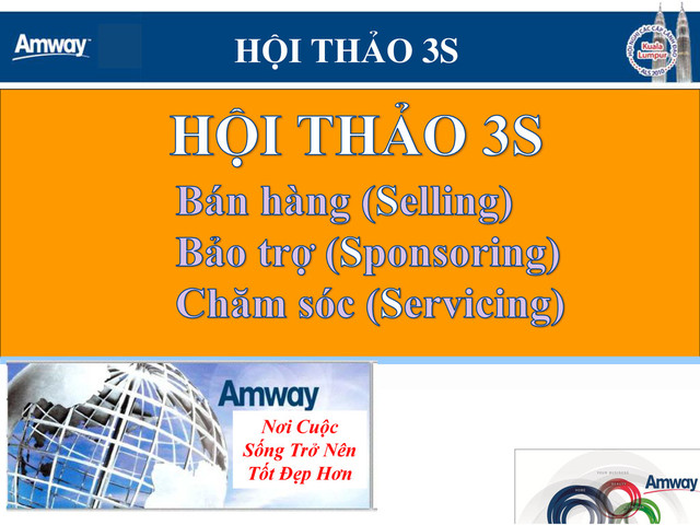 hội kinh doanh với Amway hoặc nói khác đi về chương trình bán hàng của Amway rằng thành công có thể đạt được mà không cần phải nỗ lực nhiều. 2.KHÔNG ĐƯỢC thổi phồng về thu nhập tiềm năng hoặc về sản phẩm cũng như về các thông tin công ty đưa ra, dù trực tiếp hay gián tiếp 3.KHÔNG ĐƯƠC tổ chức những buổi huấn luyện, hội họp…tại khách sạn, nhà hàng, tại nhà, văn phòng…. mà vi phạm luật pháp Việt Nam và nguyên tắc ứng xử của Amway hoặc gây mất trật tự an ninh xã hội. 4.KHÔNG ĐƯƠC đề cập và bình luận về chính trị, tôn giáo, hoặc niềm tin cá nhân. 5.KHÔNG ĐƯƠC đưa ra những bình luận và những so sánh gây ảnh hưởng không tốt đến công ty hoặc sản phẩm của đối thủ cạnh tranh. HỘI THẢO 3S