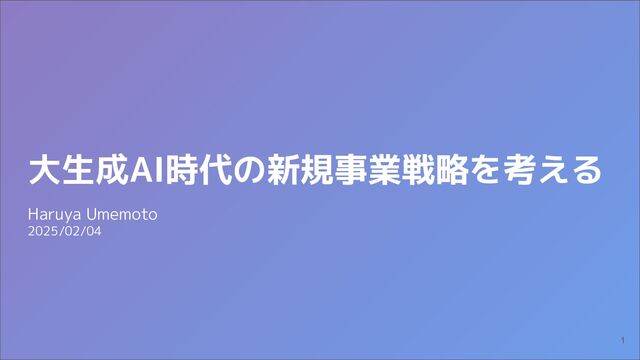 大生成AI時代の新規事業戦略を考える Haruya Umemoto 2025/02/04 1