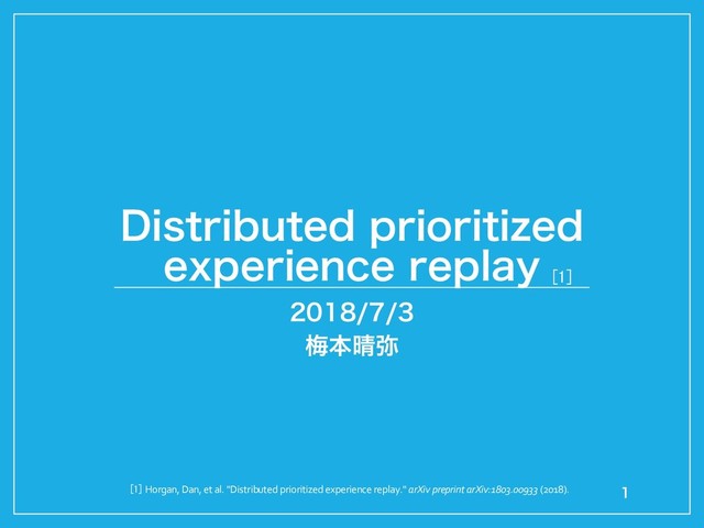 prioritized experience replay." arXiv preprint arXiv:1803.00933 (2018).