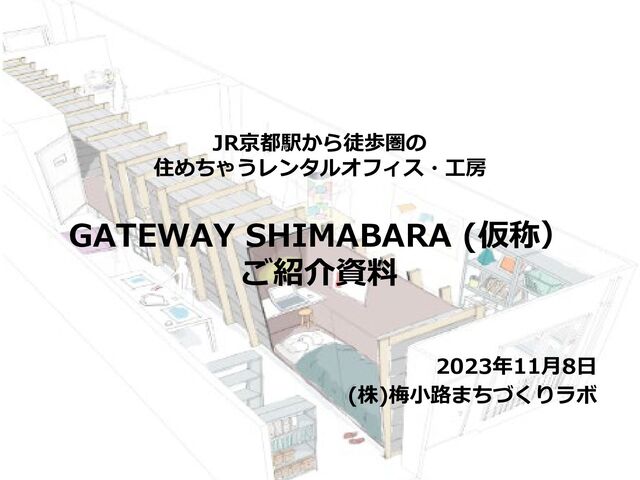 JR京都駅から徒歩圏の 住めちゃうレンタルオフィス・工房 GATEWAY SHIMABARA (仮称) ご紹介資料 2023年11月8日 (株)梅小路まちづくりラボ