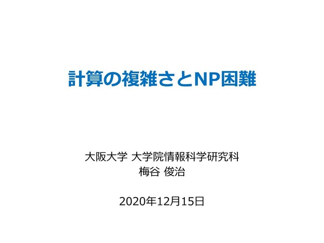 組合せ最適化問題を語る上で避けて通れないのが「NP困難問題」です.NP困難問題の定義は「指数時間アルゴリズムが存在する問題」でも「多項式時間アルゴリズムが存在しない問題」でもないのですが誤解する人が大変多く,プレスリリースの「NP困難問題が解けました!」という見出しを読むたびにしかめ面をしています.私自身も計算理論の専門家と言うわけではありませんが,組合せ最適化に取り組むにあたり必要な知識を簡単にまとめました.