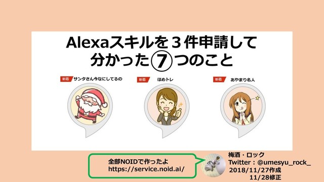 Alexaスキルを3件申請して 分かった つのこと ⑦ サンタさん今なにしてるの ほめトレ あやまり名人 梅酒・ロック Twitter :