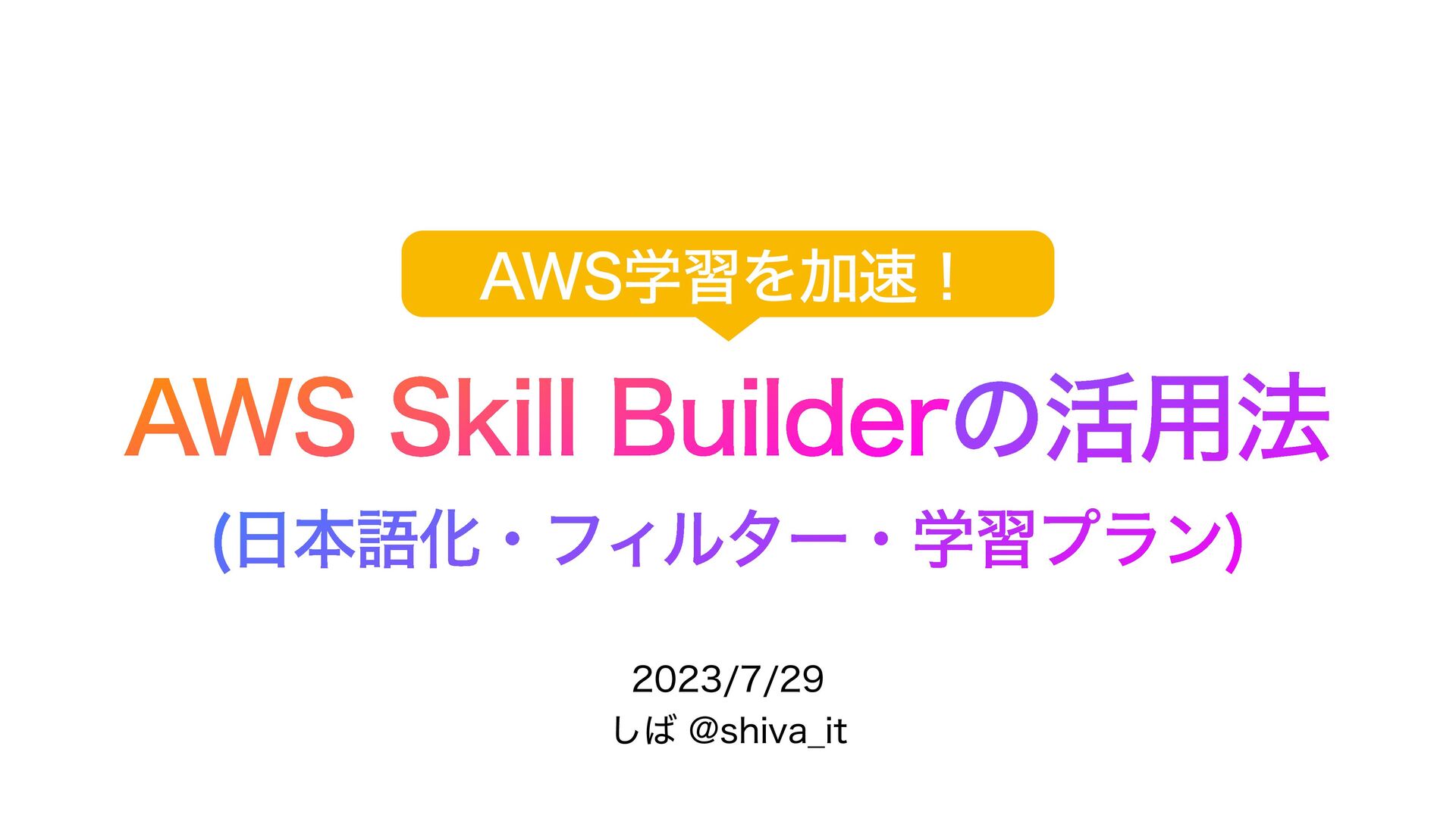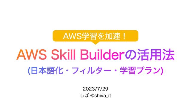 "844LJMM#VJMEFSͷ׆༻๏ ຊޠԽɾϑΟϧλʔɾֶशϓϥϯ ͠!TIJWB@JU "84ֶशΛՃʂ