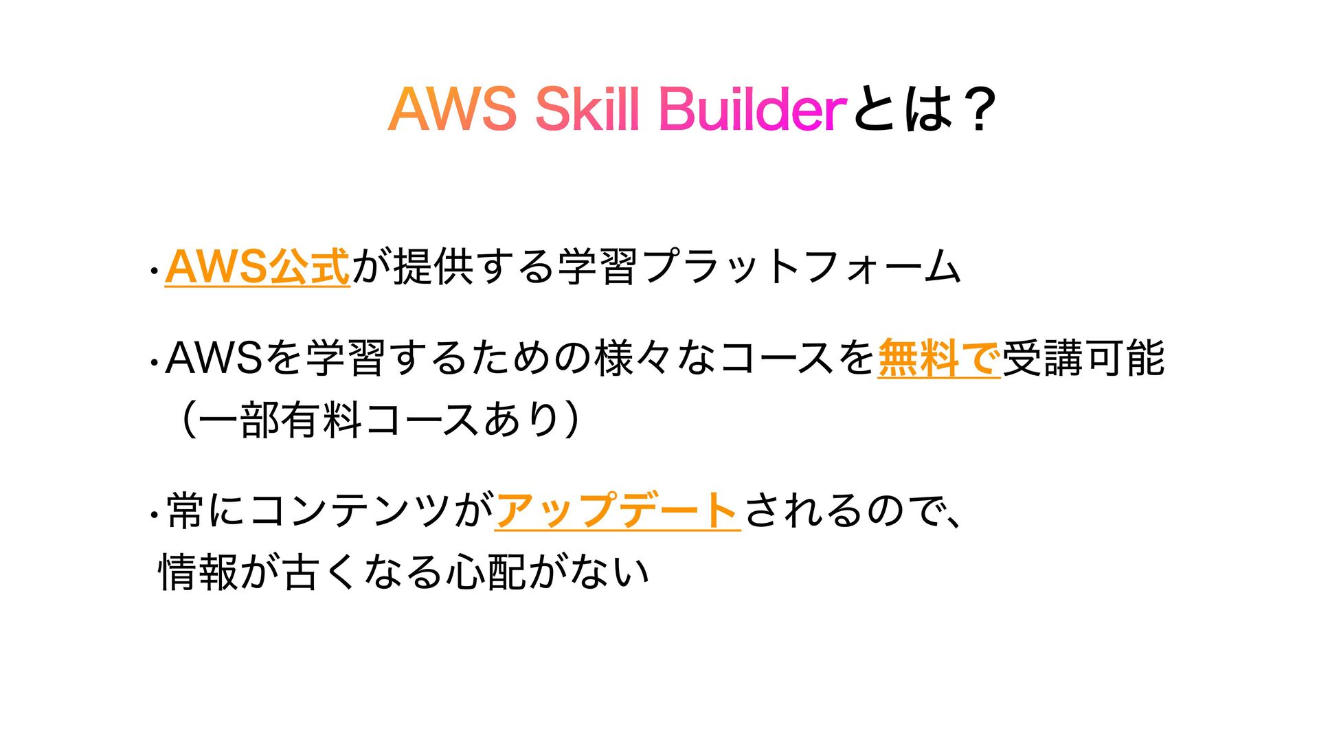 "844LJMM#VJMEFSͱʁ w"84ެ͕ࣜఏڙ͢ΔֶशϓϥοτϑΥʔϜ w"84Λֶश͢ΔͨΊͷ༷ʑͳίʔεΛແྉͰडߨՄೳ ʢҰ෦༗ྉίʔε͋Γʣ wৗʹίϯςϯπ͕Ξοϓσʔτ͞ΕΔͷͰɺ ใ͕ݹ͘ͳΔ৺͕ͳ͍