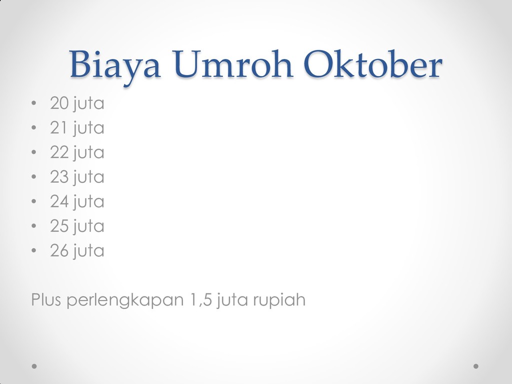 Bombastis Paket Umroh Oktober Murah dan lengkap yang telah direlease dan akan memberikan berbagai kemudahan dalam menuju tanah suci dimulai pada tanggal 02 oktober tahun ini. Paket yang dirancang secara khusus dan spesial untuk menjangkau semua kalangan yang ingin memberikan yang terbaik dalam syiar Islam di tanah air melalui penyelenggaraan ibadah ke tanah suci (Speakerdeck ). Melakukan hijrah di tahun awal hijriah demi menjaga tetap teguhnya keimanan dan ketaqwaan sehingga tujuan utama tercipta di dunia fana ini tidaklah pernah terlepas dari selain menyembah kepada Sang Khaliq. Merajut hari-hari baru penuh dengan kegembiraan karena nikmat yang begitu besar yang telah diberikan kepada seluruh umat.