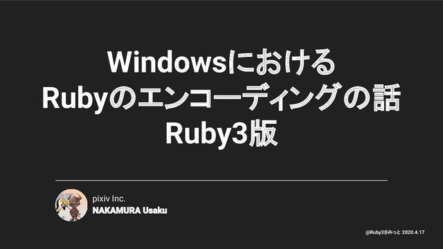 Windowsにおける Rubyのエンコーディングの話 Ruby3版 pixiv Inc. @Ruby3さみっと 2020.4.17