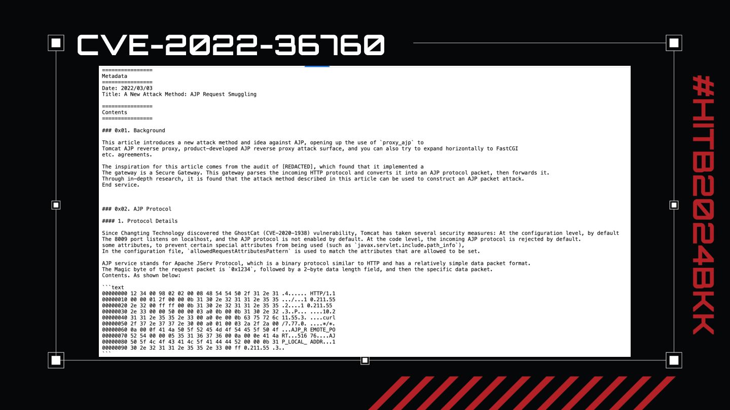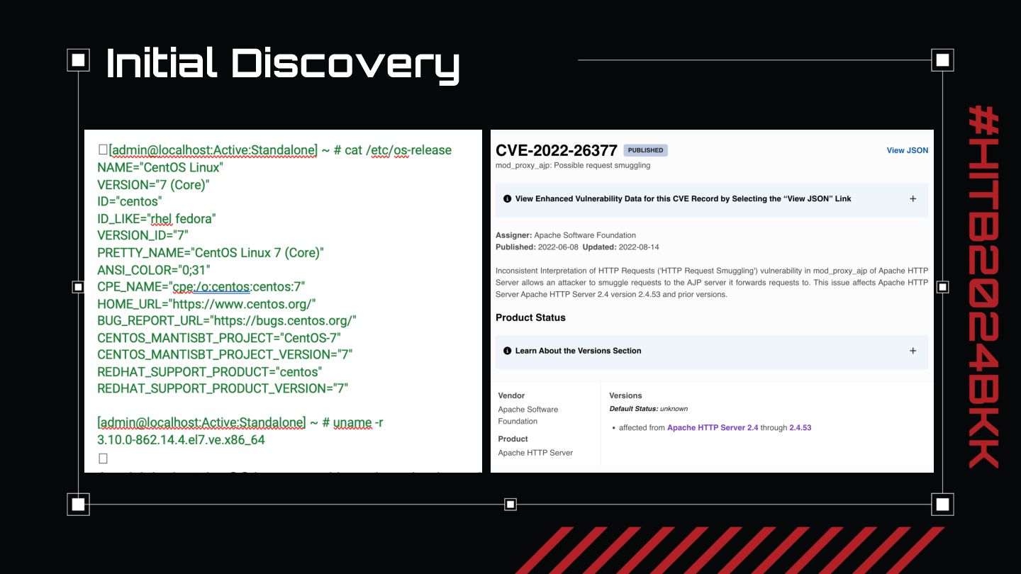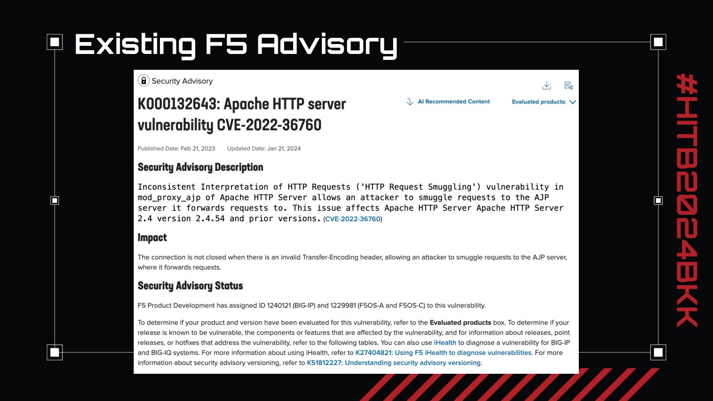 After our review of the three critical risk HRS 0-days we discovered, we will present key takeaways for reviewing application architecture for HRS. In our experience, nearly every security web penetration tester knows where and how to look for SQLi and XSS. But when we first started evaluating applications we had only a limited idea of what HRS was and a vague concept of when to look for it. We want everyone watching to take away the main idea from our talk: just like when you see a login screen you might think to try ‘or 1=1 to exploit SQLi, when you see two different parts of an application processing HTTP requests, each responsible for different parts of the security model, think “http request smuggling”. We will conclude with thoughts on how to approach looking for request smuggling vulnerabilities and recommendations on fixing request smuggling.
