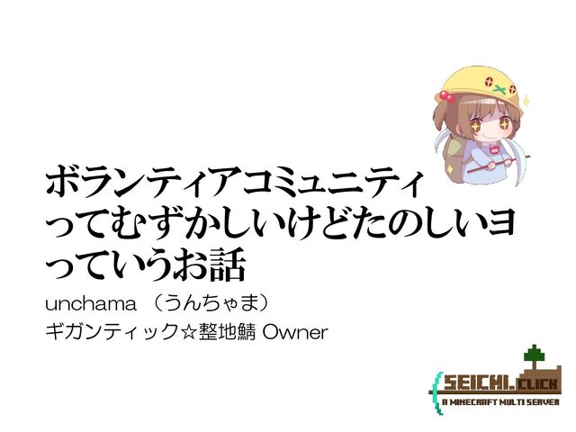 ボランティアコミュニティ ってむずかしいけどたのしいヨ っていうお話 unchama (うんちゃま) ギガンティック☆整地鯖 Owner