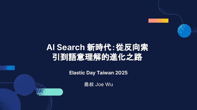 AI Search 新時代:從反向索 引到語意理解的進化之路 Elastic Day Taiwan 2025 喬叔 Joe