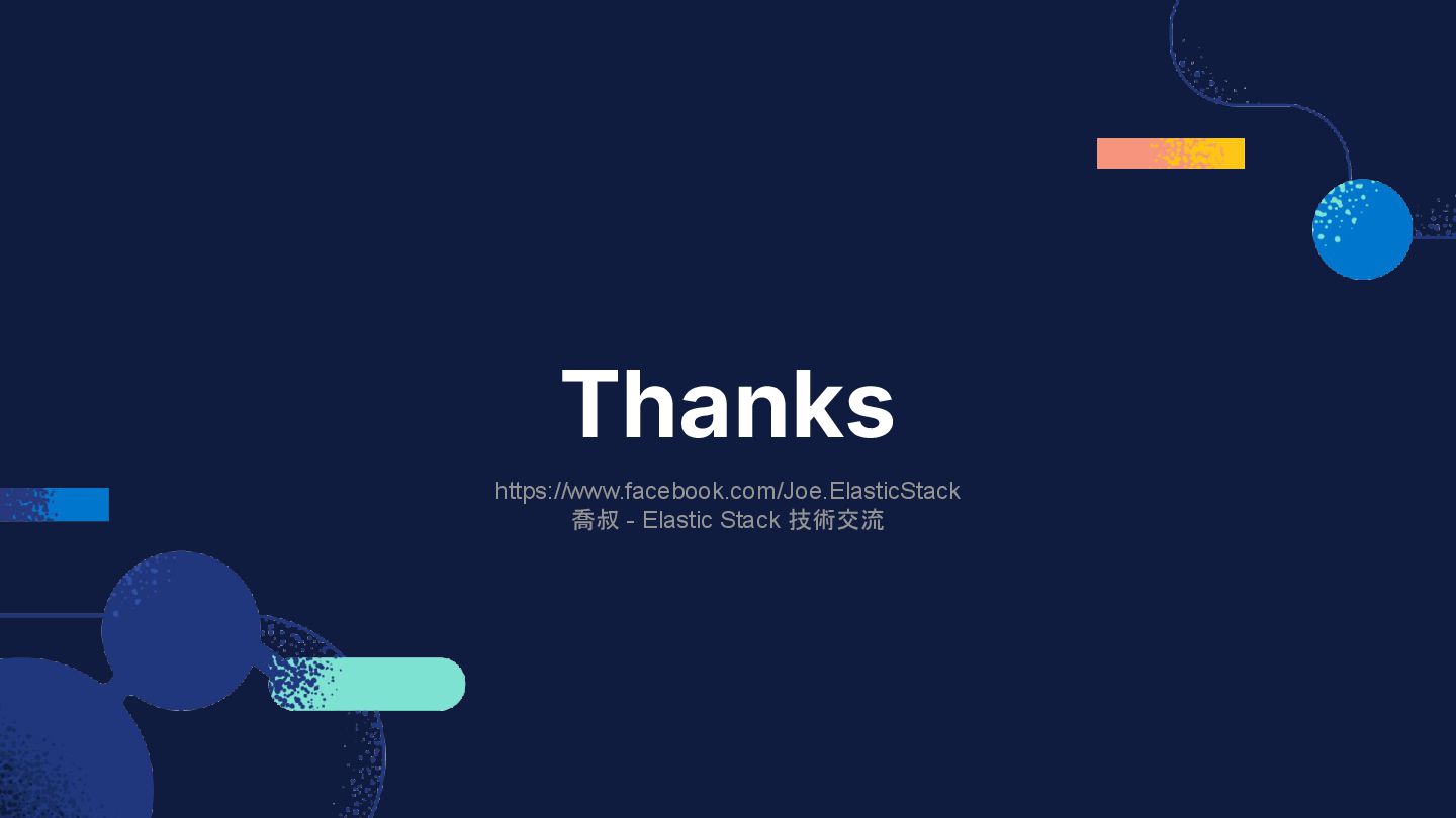 https://www.facebook.com/Joe.ElasticStack 喬叔 - Elastic Stack 技術交流 Thanks
