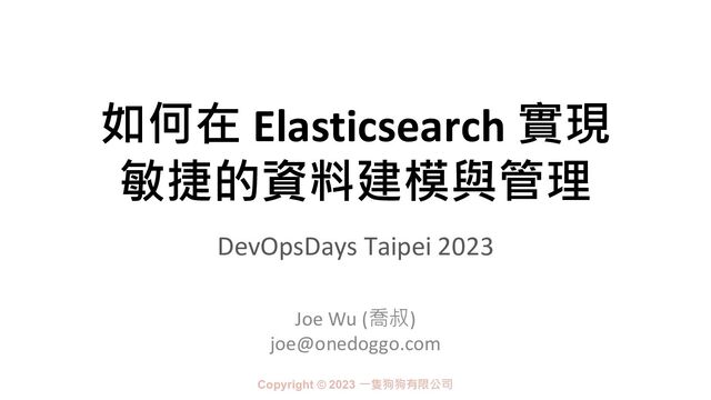 在面對不斷變化的商業需求,敏捷快速交付價值以及选代的精神已廣泛落實在 DevOps 的實踐之中,但是在使用 Elasticsearch 處理巨量日誌或資料時,一但需求改變或是有新的資料使用需求提出時,我們的應對及管理的策略為何? 如何在 Elasticsearch 來做到最佳的實踐?