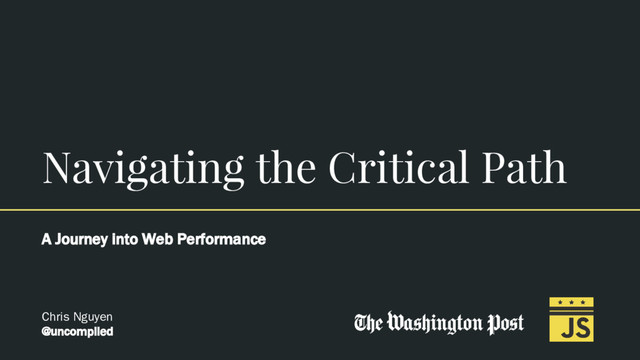 Performance is an important aspect of UX. By understanding network constraints and how they interact with the Critical Rendering Path, we'll learn how this impacts the performance of our apps. We'll also explore some metrics to help us measure our performance and learn how setting performance budgets can help us achieve our performance goals.