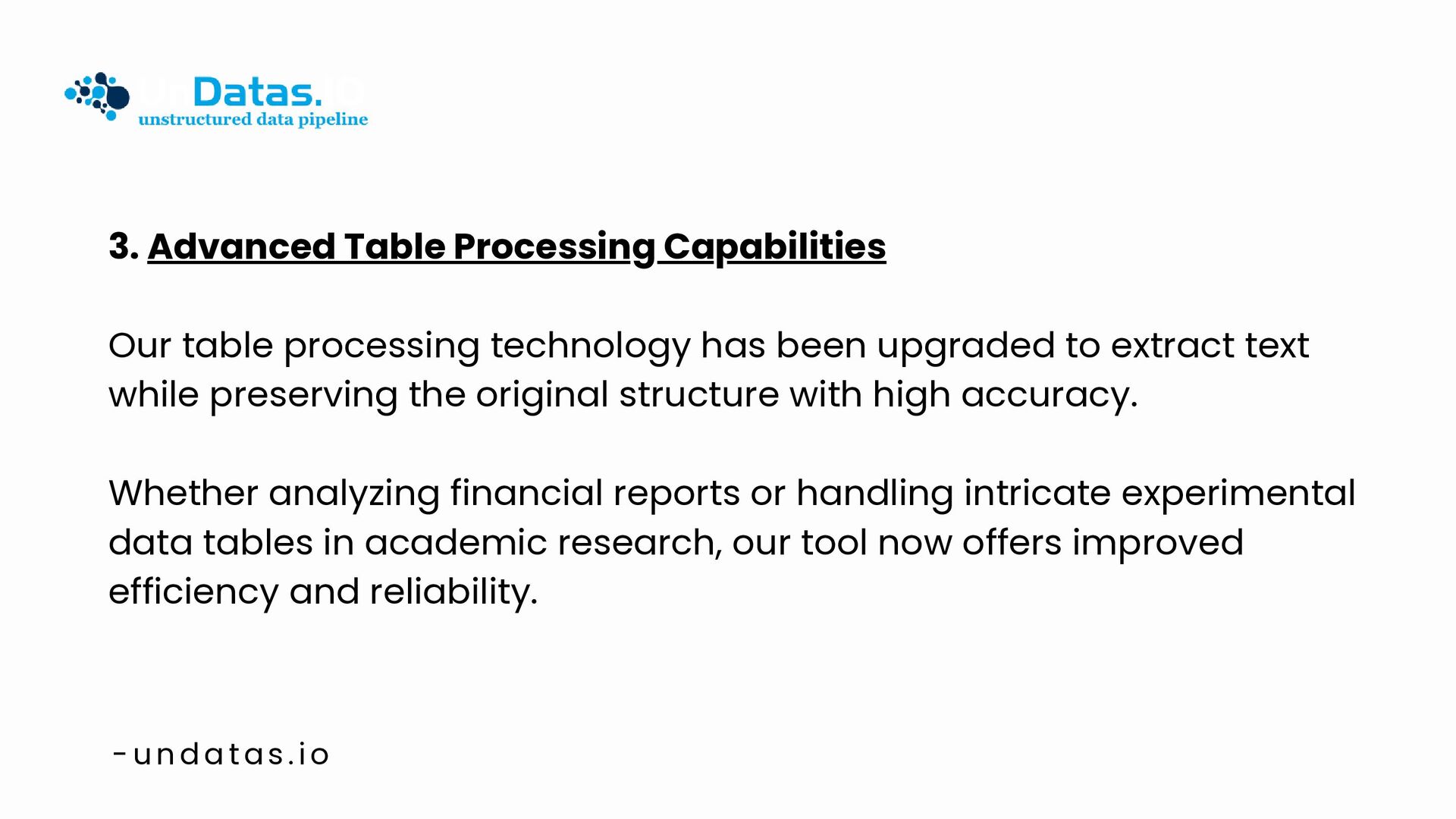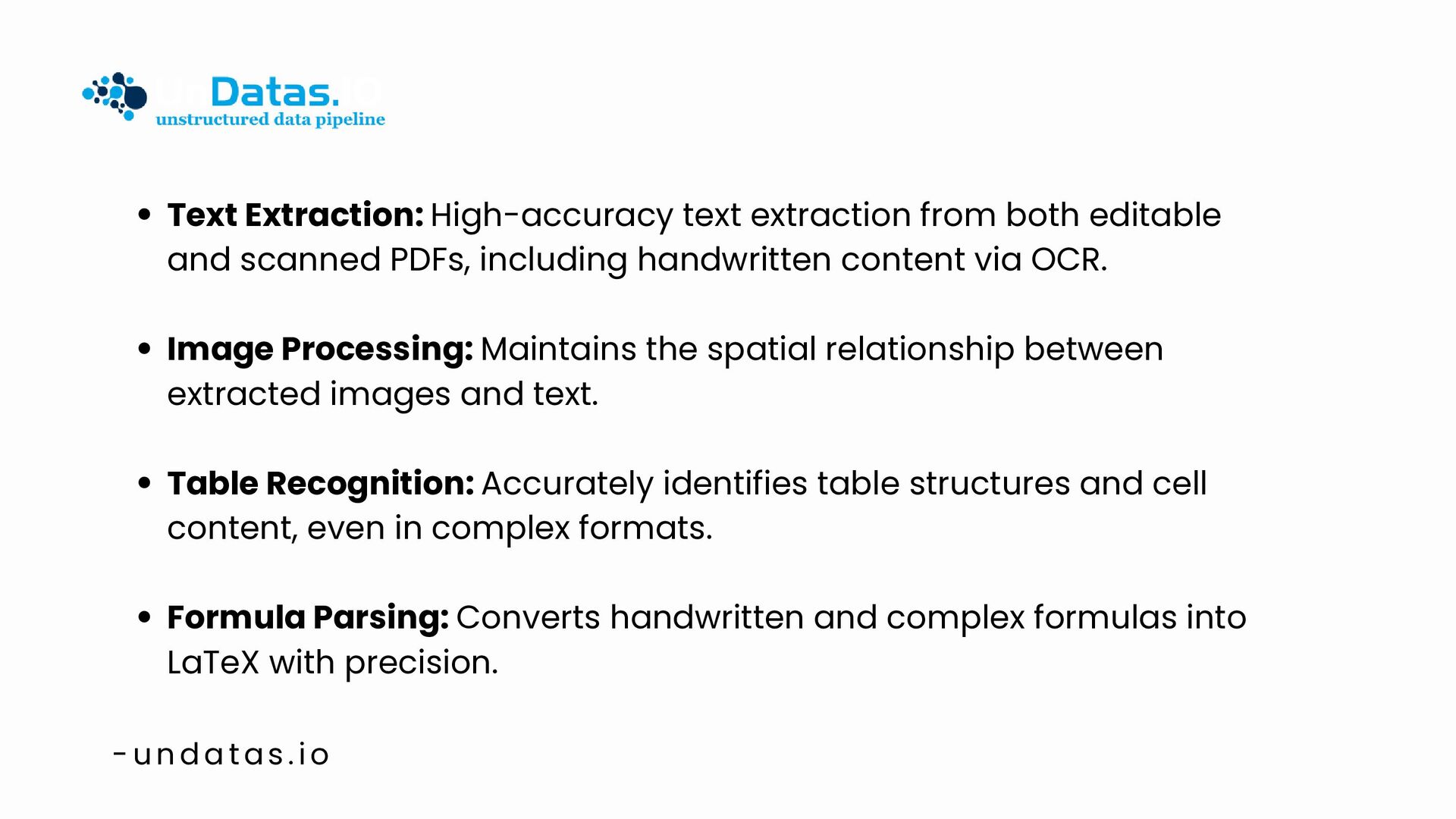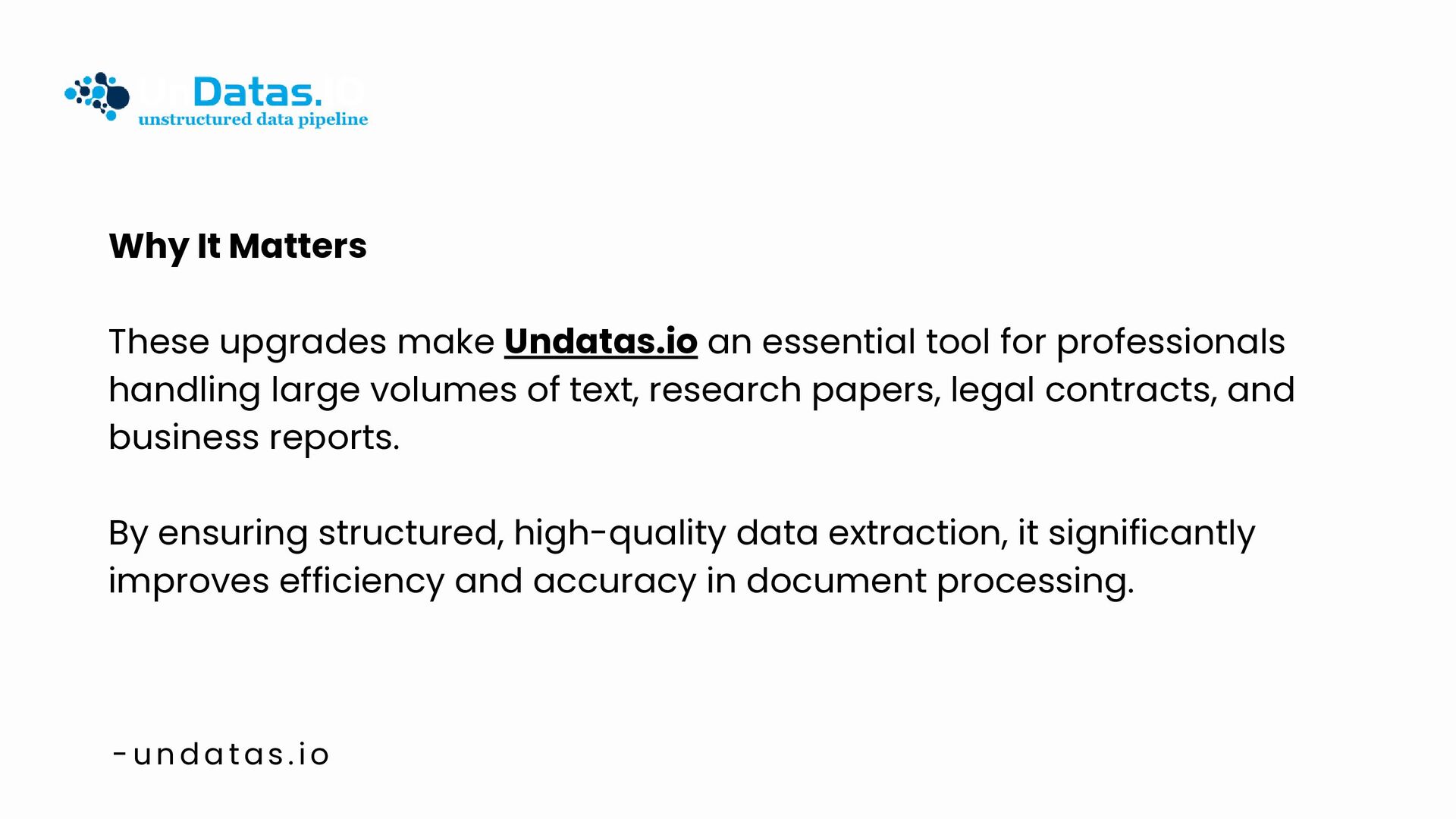 UnDatasIO is a powerful online data parsing tool designed to help users easily extract and process data from various file formats, including PDFs, images, and documents. By converting unstructured data into structured, AI-ready assets, UnDatasIO enhances data accuracy and efficiency. Integrate seamlessly with your workflows to unlock valuable insights and accelerate your AI initiatives.