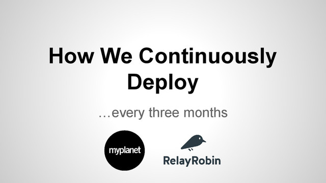 I gave a quick ignite talk about the continuous delivery pipeline on the RelayRobin product team at Myplanet.