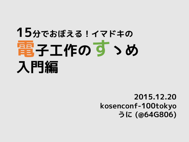 15分でおぼえる!イマドキの 電子工作のすゝめ 入門編 2015.12.20 kosenconf-100tokyo うに (@64G806)