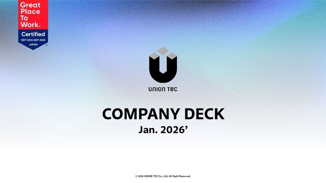 > ߴ͍ࢿۚྗ 11 © 2025 UNION TEC Co., Ltd. All Right Reserved. ߴ͍ࢿۚྗ ▼昨期(25期)主要業績 売上⾼:101.1億円(前年⽐164%) 粗利:25.6億円(前年⽐148%) ⼀⼈当たり粗利:3.1千万円 (前年⽐146%) \0 \5 ,00 0,00 0 \1 0,0 00,0 00 \1 5,0 00,0 00 \2 0,0 00,0 00 \2 5,0 00,0 00 \3 0,0 00,0 00 \3 5,0 00,0 00 0 2, 000 ,000 ,00 0 4, 000 ,000 ,00 0 6, 000 ,000 ,00 0 8, 000 ,000 ,00 0 10 ,00 0,00 0,0 00 12 ,00 0,00 0,0 00 合計 / 売上額 ⼀⼈当たり粗利 ԯ ԯ ԯ ԯ ԯ ઍສԁ ઍສԁ ઍສԁ ઍສԁ ઍສԁ SALES ORDER डച্ cҰਓͨΓૈར