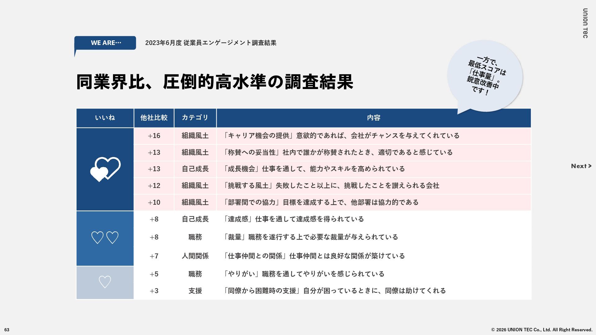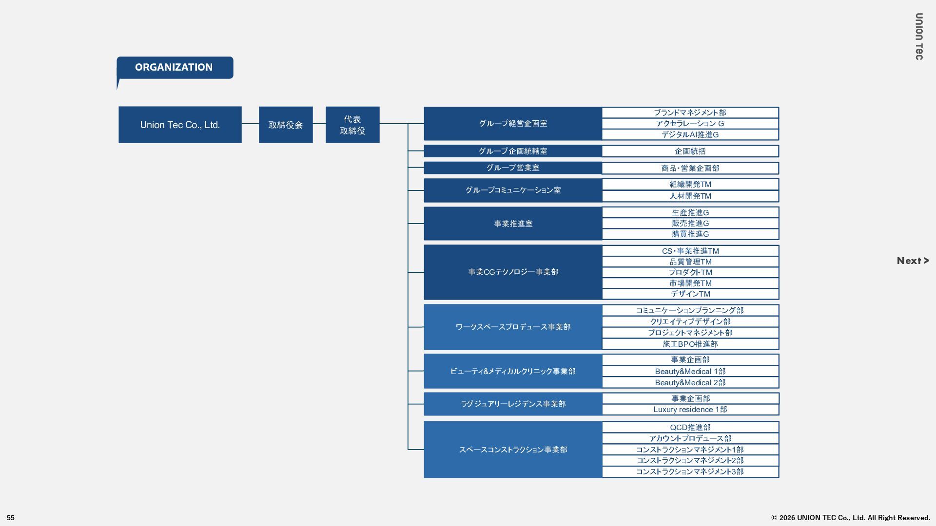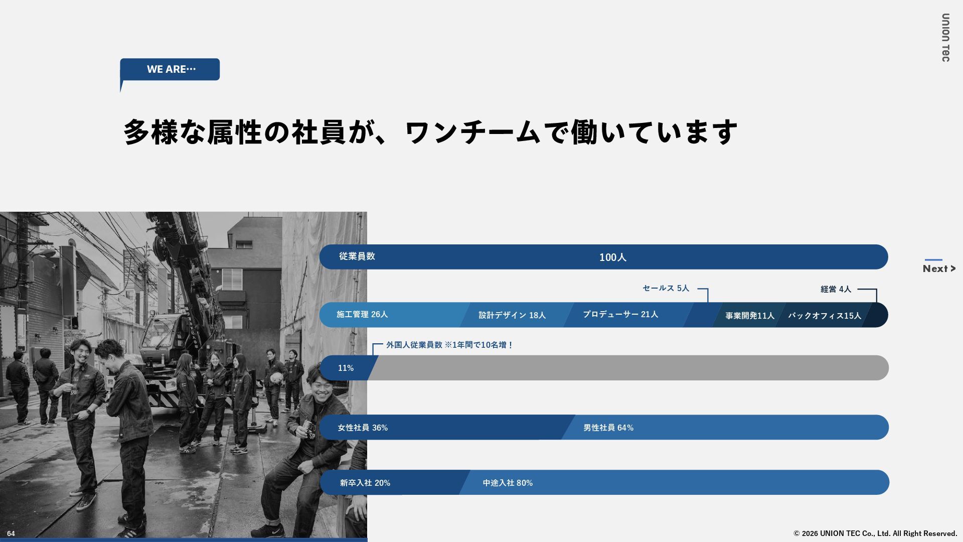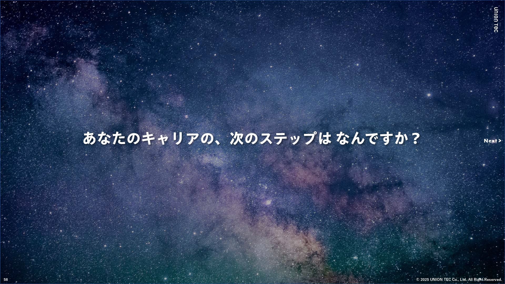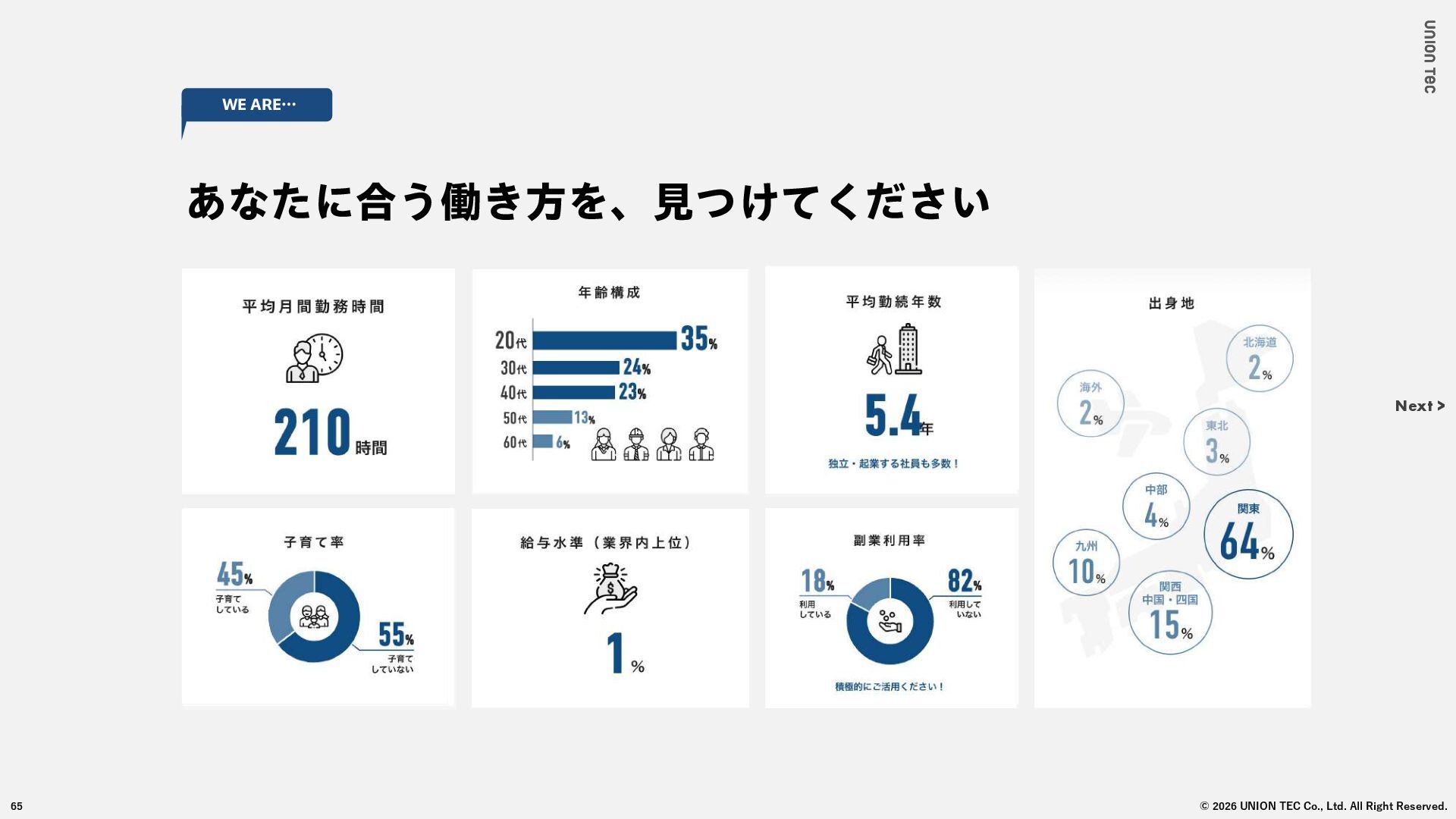 > ߴ͍ࢿۚྗ 11 © 2025 UNION TEC Co., Ltd. All Right Reserved. ߴ͍ࢿۚྗ ▼昨期(25期)主要業績 売上⾼:101.1億円(前年⽐164%) 粗利:25.6億円(前年⽐148%) ⼀⼈当たり粗利:3.1千万円 (前年⽐146%) \0 \5 ,00 0,00 0 \1 0,0 00,0 00 \1 5,0 00,0 00 \2 0,0 00,0 00 \2 5,0 00,0 00 \3 0,0 00,0 00 \3 5,0 00,0 00 0 2, 000 ,000 ,00 0 4, 000 ,000 ,00 0 6, 000 ,000 ,00 0 8, 000 ,000 ,00 0 10 ,00 0,00 0,0 00 12 ,00 0,00 0,0 00 合計 / 売上額 ⼀⼈当たり粗利 ԯ ԯ ԯ ԯ ԯ ઍສԁ ઍສԁ ઍສԁ ઍສԁ ઍສԁ SALES ORDER डച্ cҰਓͨΓૈར