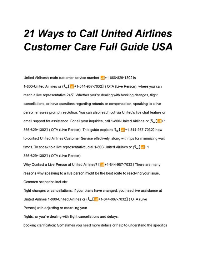 Reaching a live representative at United Airlines can make all the difference. You can call 📞 ++1 (844) 987 7032 or 1-800-United Airlines (US/OTA) to speak directly with an agent—available 24/7. Whether it’s booking issues, cancellations, refunds, or technical problems, this guide walks you through every contact method available so your concerns are handled quickly and easily.