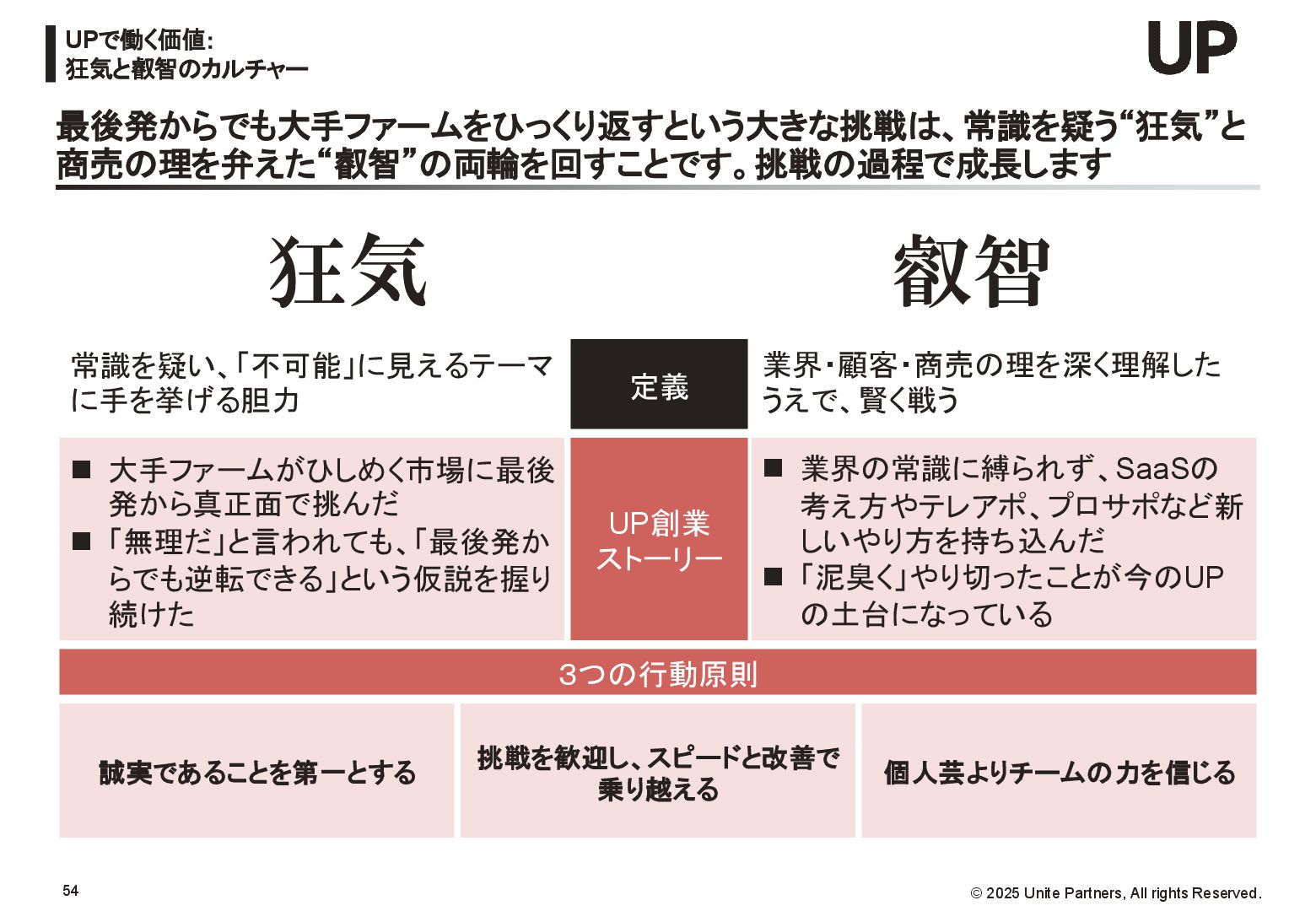 © 2025 Unite Partners, All rights Reserved. 54 UPで働く価値: 狂気と叡智のカルチャー