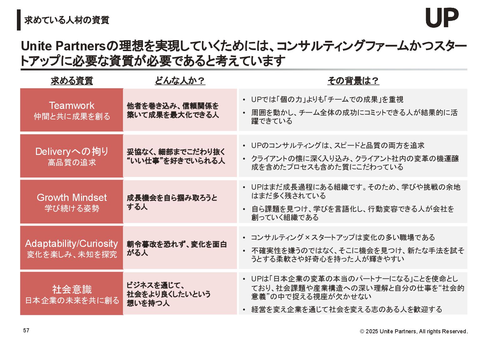 © 2025 Unite Partners, All rights Reserved. 57 求めている人材の資質 Unite