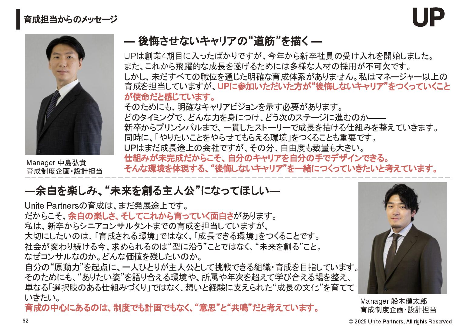 © 2025 Unite Partners, All rights Reserved. 62 育成担当からのメッセージ ―