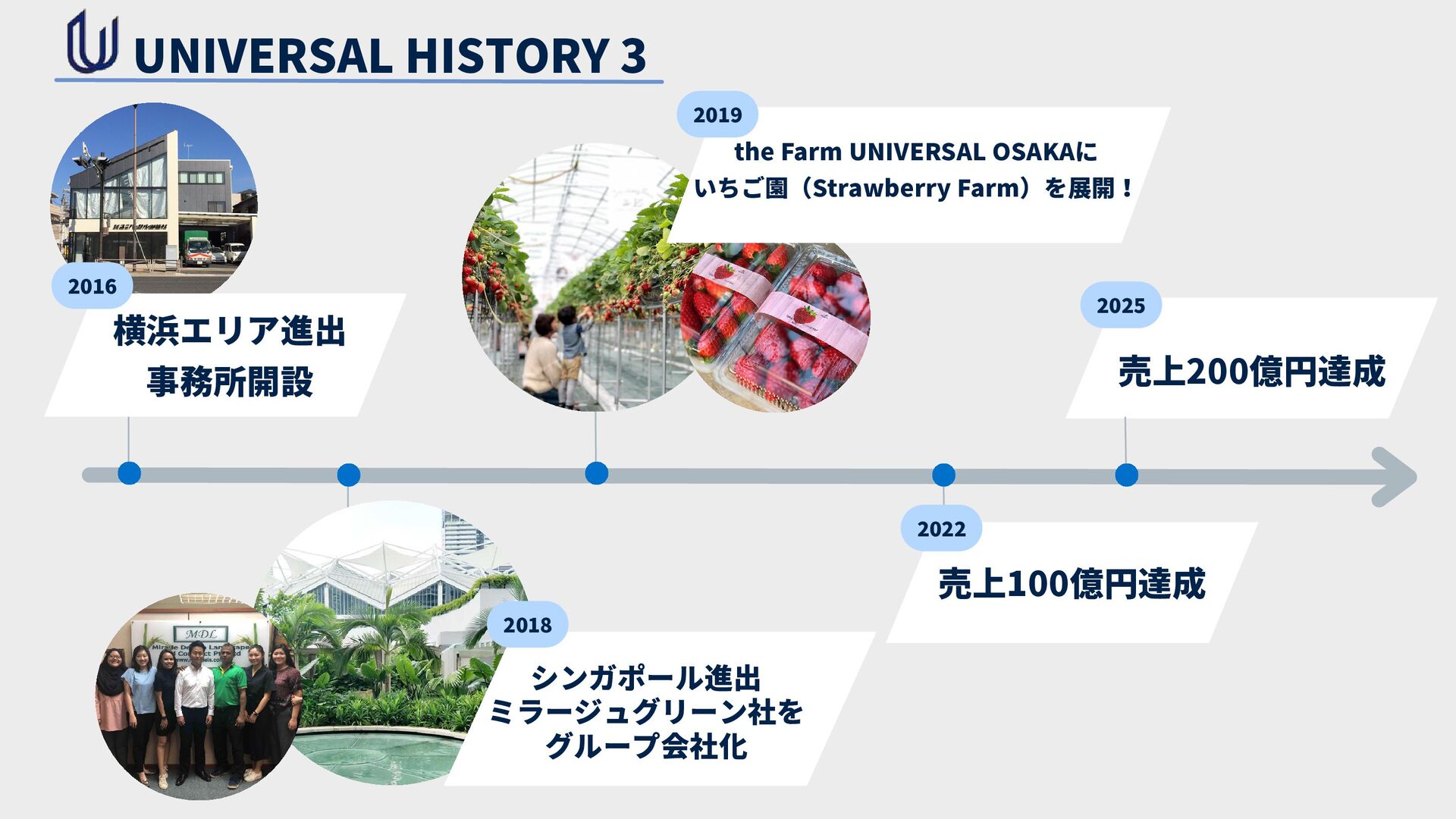 Farm)を展開! 2022 売上100億円達成 2016 横浜エリア進出 事務所開設 2025 売上200億円達成 UNIVERSAL HISTORY 3