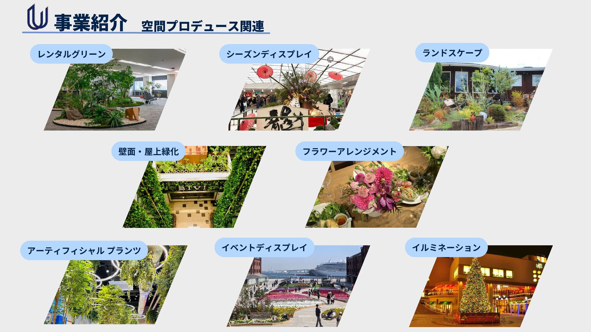 イルミネーション 壁面・屋上緑化 ランドスケープ シーズンディスプレイ レンタルグリーン イベントディスプレイ アーティフィシャル プランツ フラワーアレンジメント 事業紹介