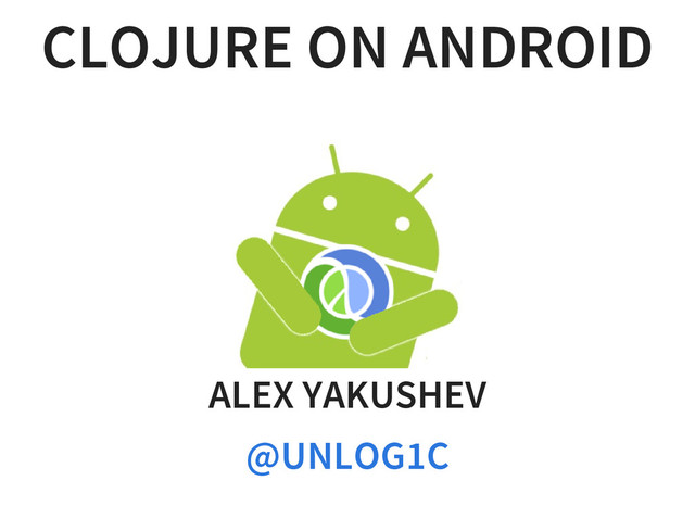 Clojure's behalf. Worked on Clojure-Android during years 1 and 2 Wrote Project Skummet last year Now working on enabling TDD and CI support for Clojure- Android projects Author of Compliment library Graduated a week ago, now have to figure what I'm doing with my life