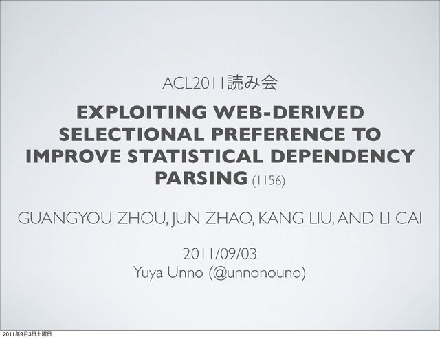 (1156) GUANGYOU ZHOU, JUN ZHAO, KANG LIU, AND LI CAI 2011/09/03 Yuya Unno (@unnonouno) 20119݄3༵