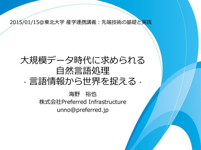 7È ! ICFPÁƏ÷Ó ! ɘɞª¿: 5È ! Publications: ACL, SIGKDD, NAACL, ALENEX, SODA, FOCS, STOC, DCC, SDM, ICDM, SPIRE, ESA, ICPR, MLJ, JMLR, NIPS, ECML/PKDD, Bioinformatics, Nucleic Acids Research ! Ex. SONY, IBM Research, Yahoo! Japan, Sun, Accenture, Microsoft, mixi, FAST Search&Transfer, TOPPAN Printing, NOMURA Security, GREE, KUMON, Google interns