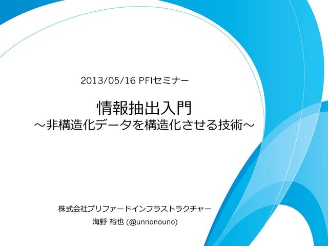 Databases, Vol. 1, No. 3 (2007) pp. 261-377, 2008. l J. Lafferty, A. McCallum, F . Pereira. Conditional Random Fields: Probabilistic Models for Segmenting and Labeling Sequence Data. ICML2001. l 岡崎直観, 辻井潤⼀一. ⾼高速な類似⽂文字列列検索索アルゴリズム. 情報処理理学会創⽴立立50周年年記念念全国⼤大会, 1C-1, 2010. l V. Pervouchine, H. Li, B. Lin. Transliteration Alignment. ACL&IJCNLP 2009, pp. 136-144, 2009. 51