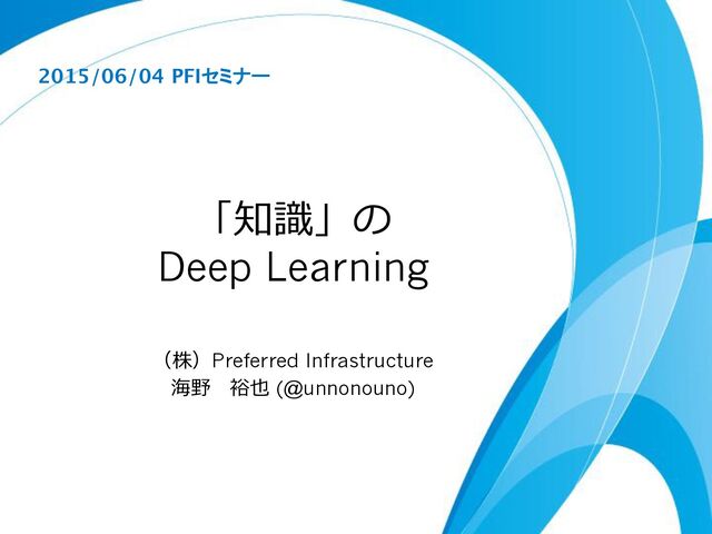 Bengio. Learning structured embeddings of knowledge bases. AAAI2011. ! [Bordes+13] A. Bordes, N. Usunier, A. Garcia-Duran, J. Weston, O. Yakhnenko. Translating Embeddings for Modeling Multi-relational Data. NIPS 2013. ! [Fan+14] M. Fan, Q. Shou, E. Chang, T. F . Zheng. Transition-based Knowledge Graph Embedding with Relational Mapping Properties. PACLIC 2014. ! [Wang+14] Z. Wang, J. Zhang, J. Feng, Z. Chen. Knowledge Graph Embedding by Translating on Hyperplanes. AAAI 2014.