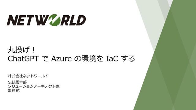 Infrastructure as Code のツールを用いて Azure に環境を構築する内容です。