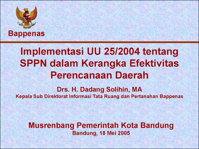 Implementasi UU 25/2004 tentang SPPN dalam Kerangka Efektivitas Perencanaan Daerah