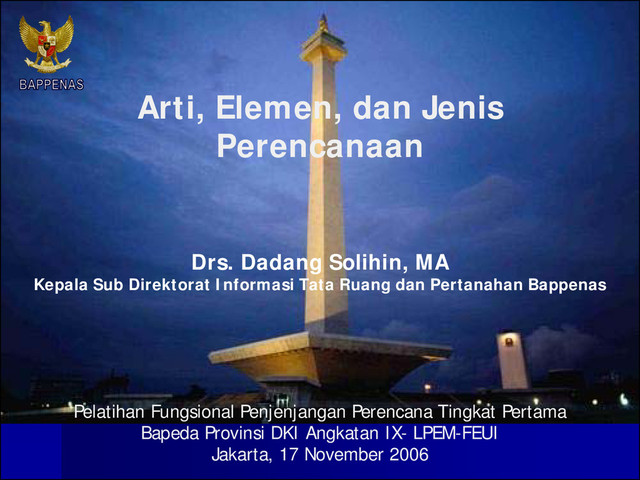 Pelatihan Fungsional Penjenjangan Perencana Tingkat Pertama Bapeda Provinsi DKI Angkatan IX- LPEM-FEUI @ Jakarta, 17 November 2006
