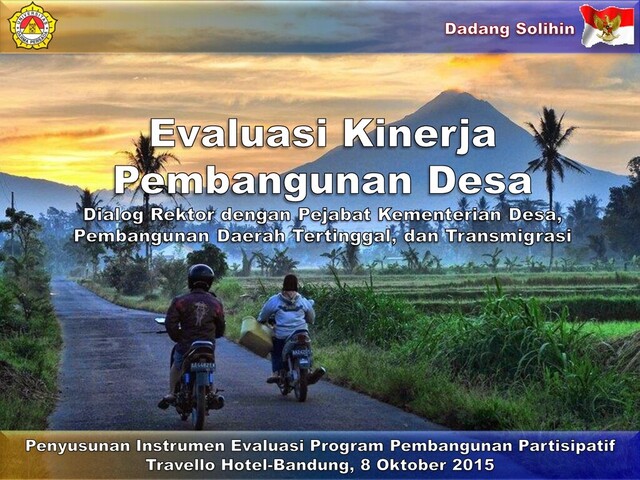 8 Oktober 2015 Dialog Rektor dengan Pejabat Kementerian Desa, Pembangunan Daerah Tertinggal, dan Transmigrasi tentang Penyusunan Instrumen Evaluasi Program Pembangunan Partisipatif @Travello Hotel-Bandung