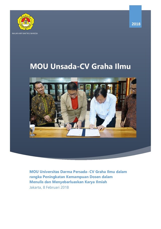 8 Februari 2018 MOU Universitas Darma Persada- CV Graha Ilmu dalam rangka Peningkatan Kemampuan Dosen dalam Menulis dan Menyebarluaskan Karya Ilmiah