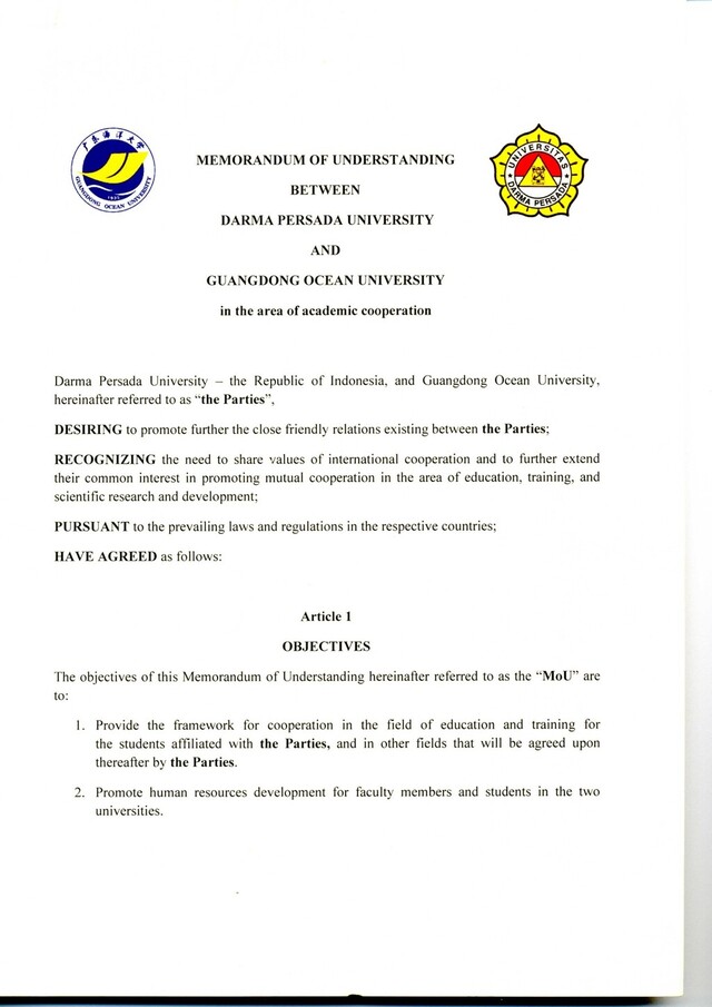 20 April 2016 MOU Unsada and Guangdong Ocean University in the area of Academic Cooperation