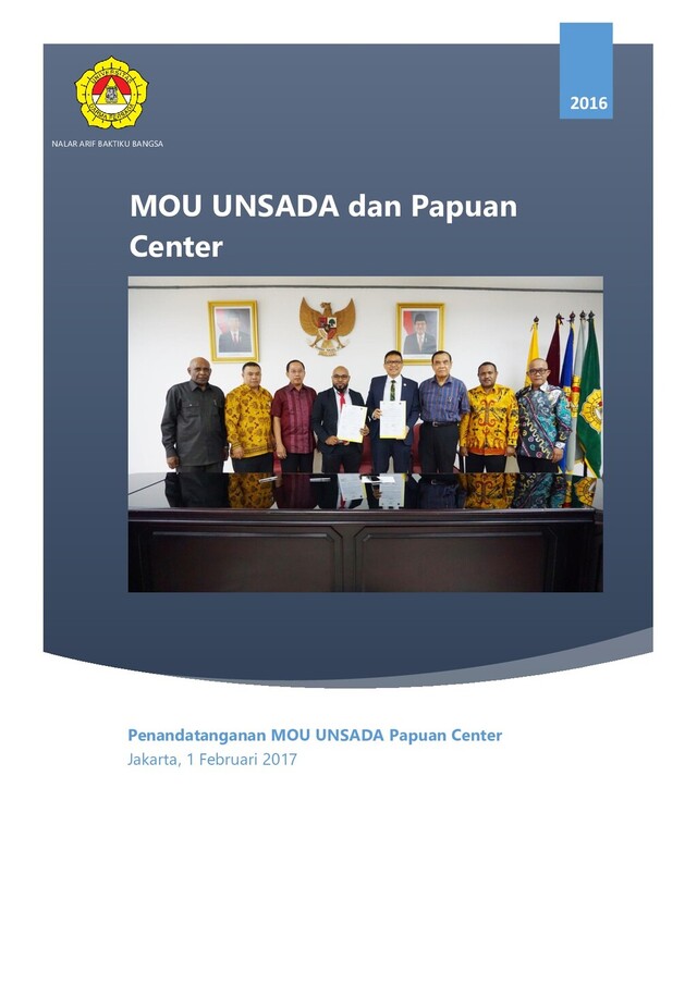 2016 Penandatanganan MOU UNSADA Papuan Center Jakarta, 1 Februari 2017