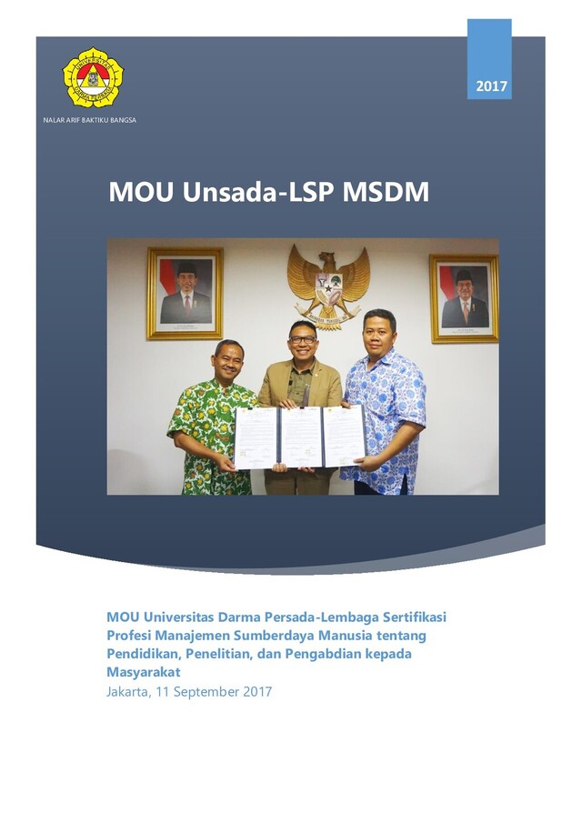 11 September 2017 MOU Universitas Darma Persada-Lembaga Sertifikasi Profesi Manajemen Sumberdaya Manusia tentang Pendidikan, Penelitian, dan Pengabdian kepada Masyarakat