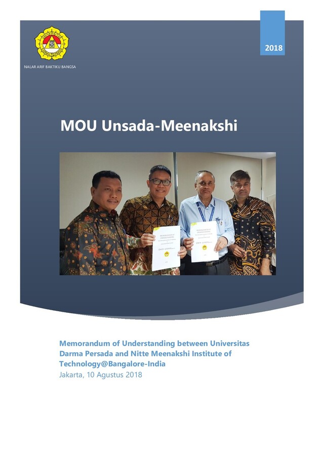 10 Agustus 2018 Memorandum of Understanding between Universitas Darma Persada and Nitte Meenakshi Institute of Technology@Bangalore-India